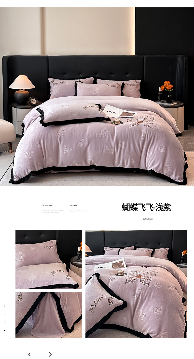 商品名称:金牛座家纺 2025新款8斤加厚牛奶绒刺绣四件套-蝴蝶飞飞 蝴蝶飞飞-浅紫