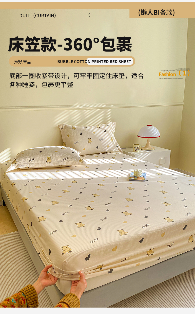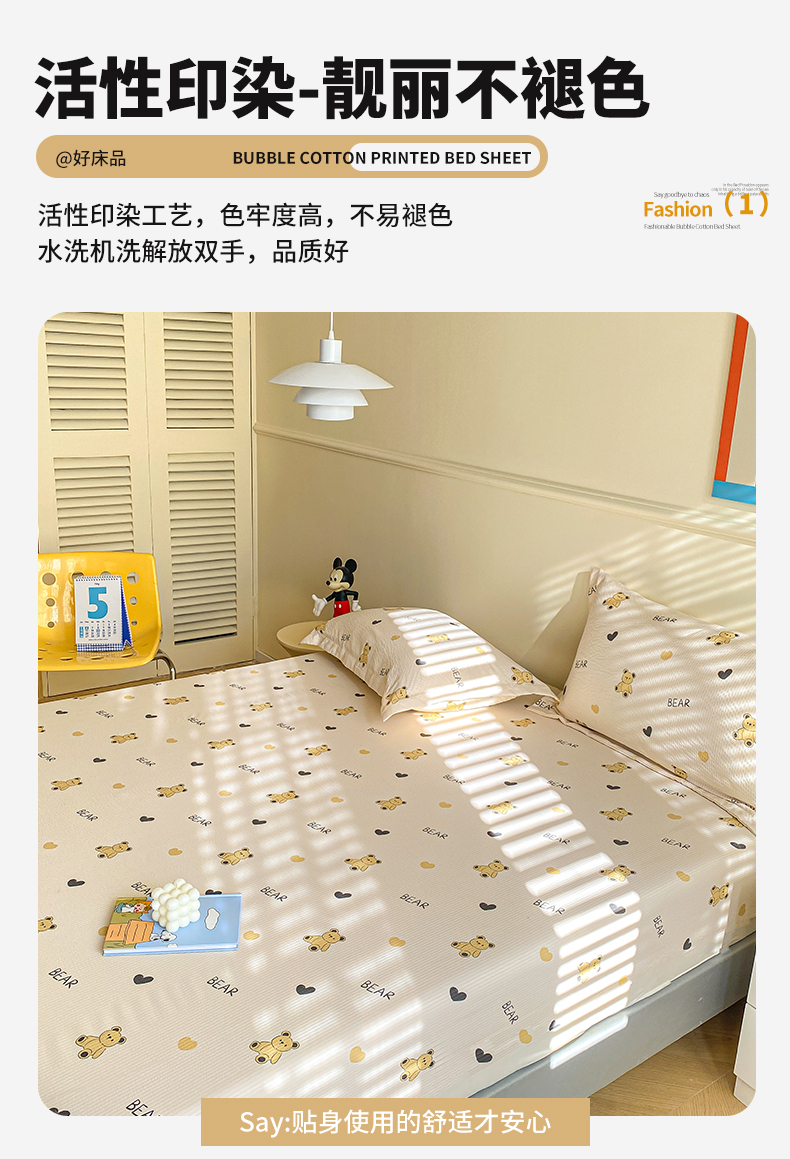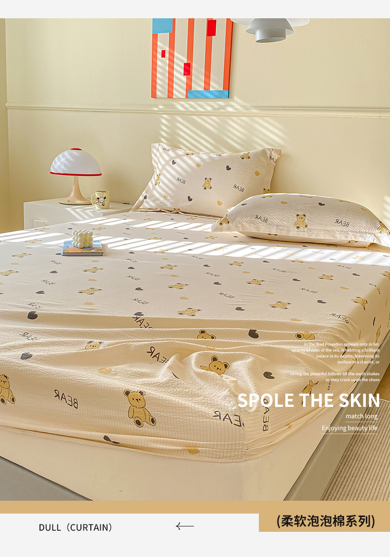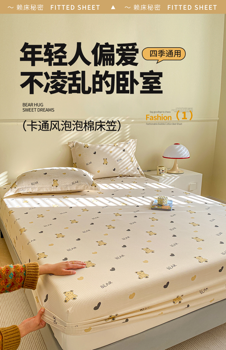 恬澳家纺 2025新款A类印花泡泡棉床笠-场景一 彼得熊