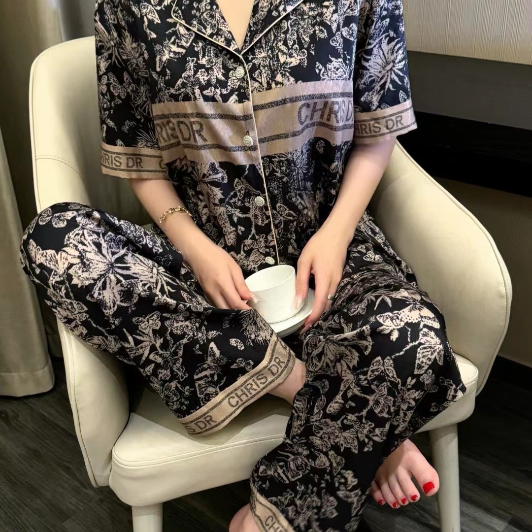 当前位置: 91家纺网 > 商品网购 > 居家日用 > 睡衣 > 妍景家居生活馆 2025新款冰雪丝三件套复古CH 黑色