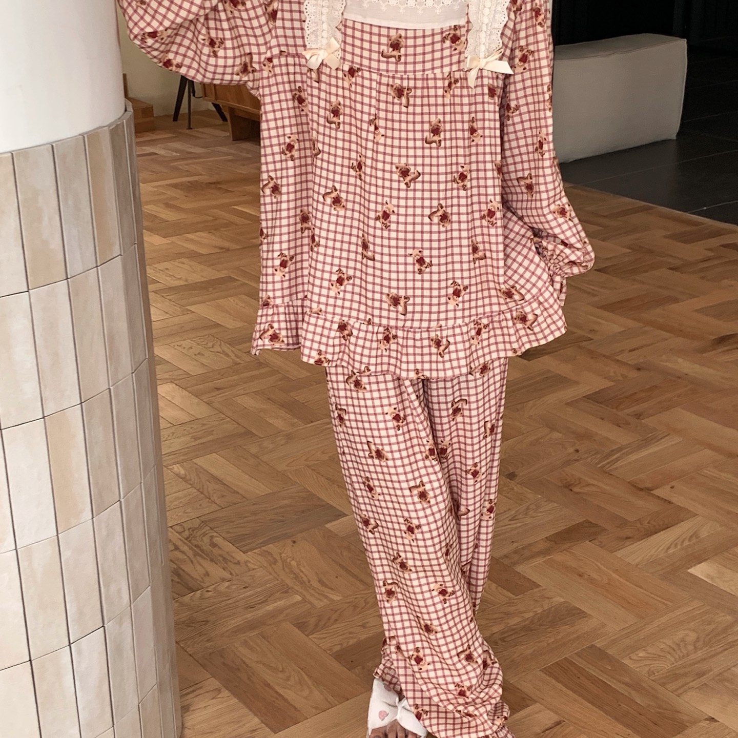 妍景家居生活馆 2025新款荷叶边印花小熊 红色