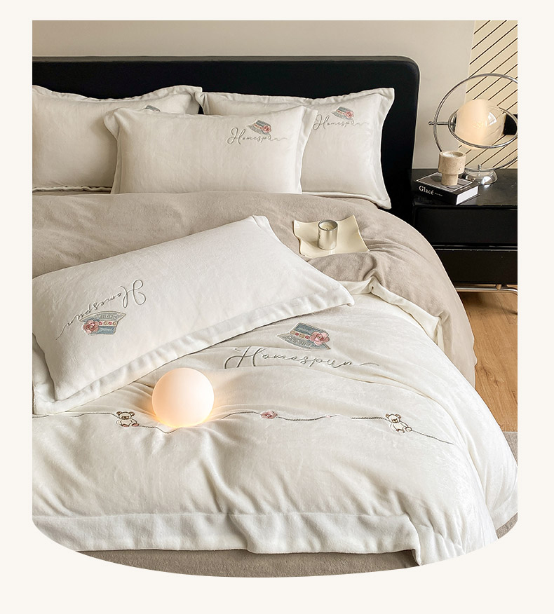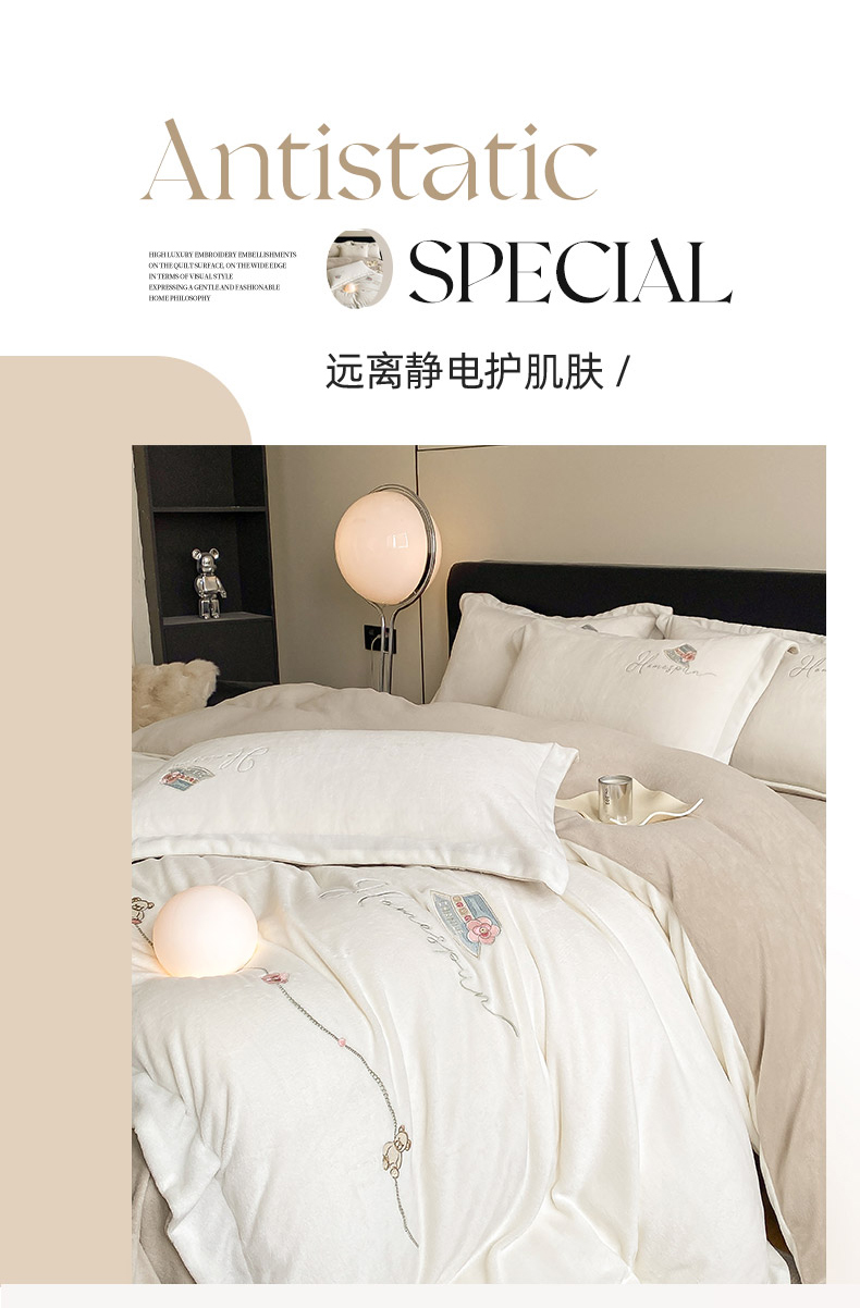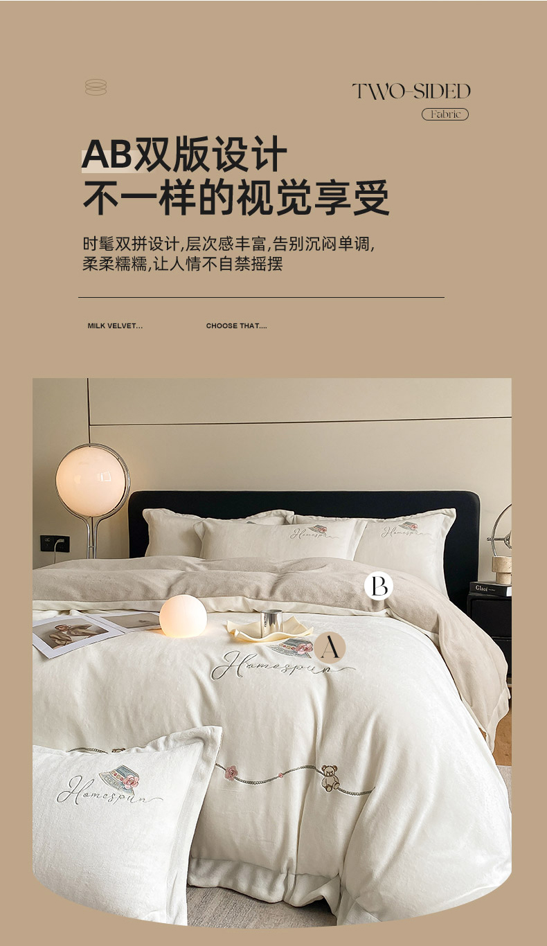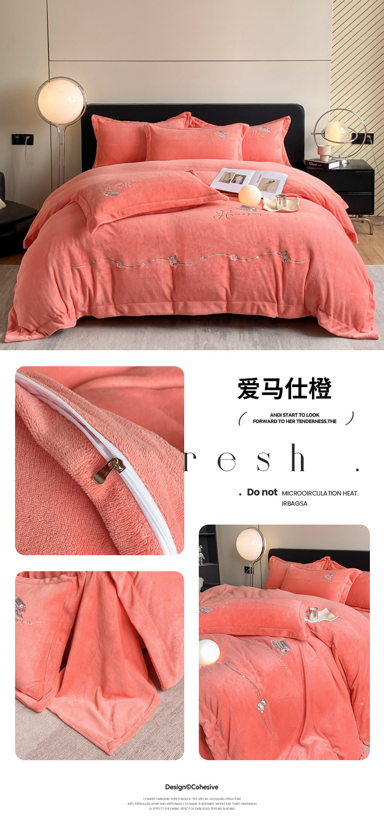 (总)绒世界 2025秋冬小香风香奈系列牛奶绒四件套,爱马仕橙,都市灰,蜜桃粉,奶昔白,秋波蓝,薰衣紫,樱花粉