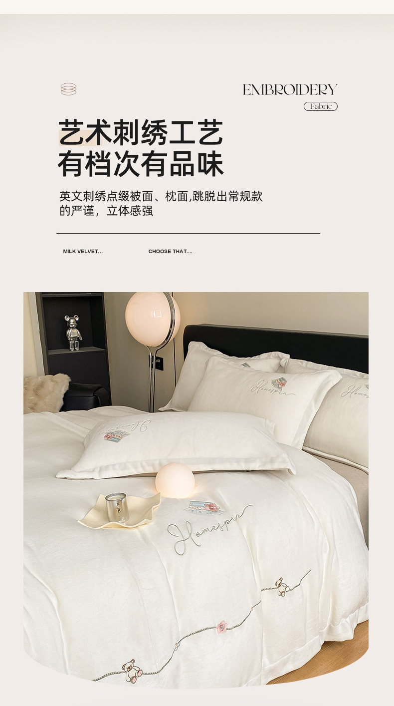 绒世界 2025新款秋冬加厚公主日记牛奶绒四件套 月白