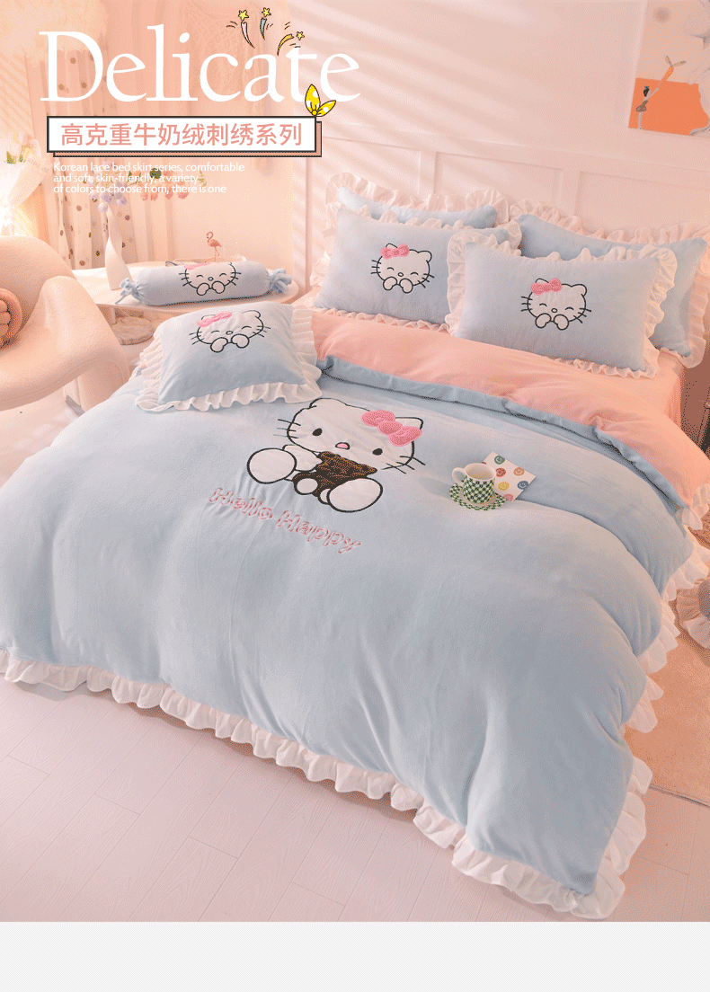 当前位置: 91家纺网 > 商品网购 > 床品套件 > 四件套 > 牛奶绒四件套 > 丝印良品 2025新款高端牛奶绒卡通刺绣牛奶绒四件套 可爱猫-蓝粉