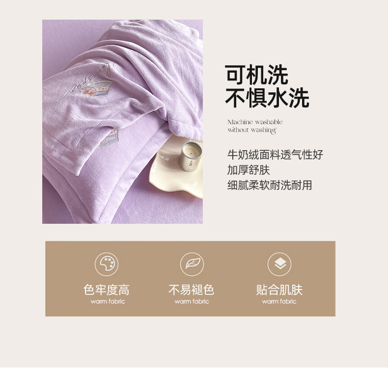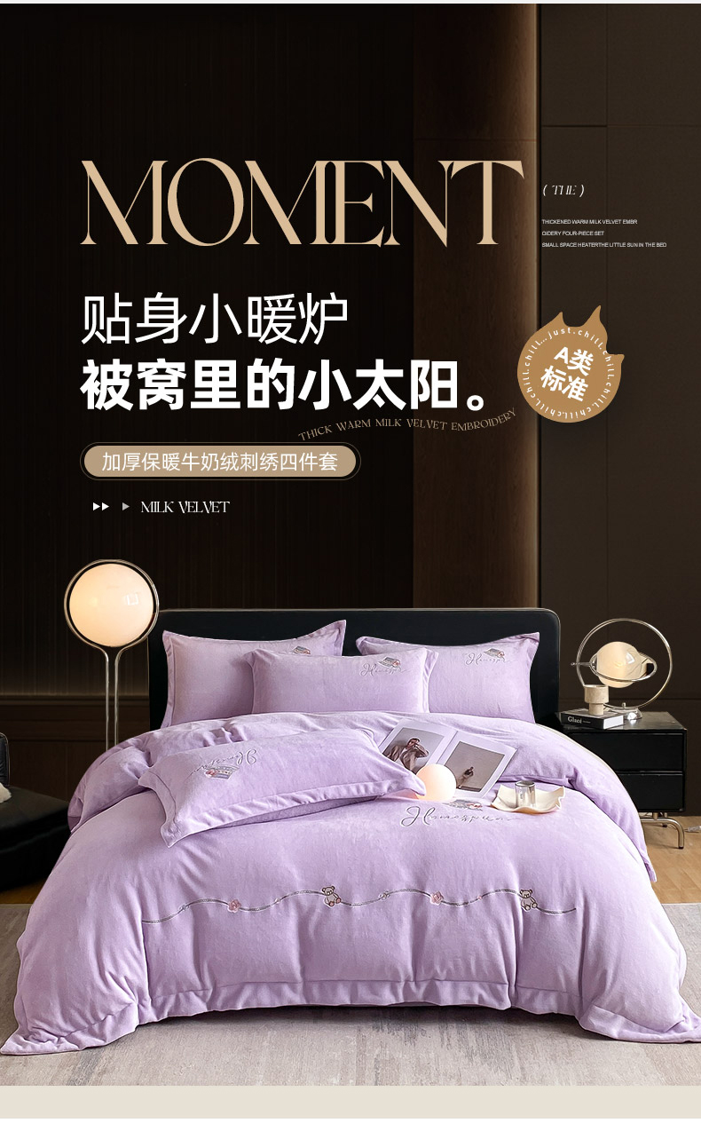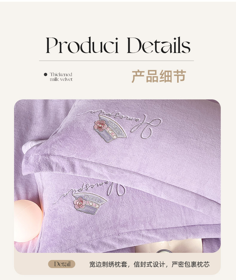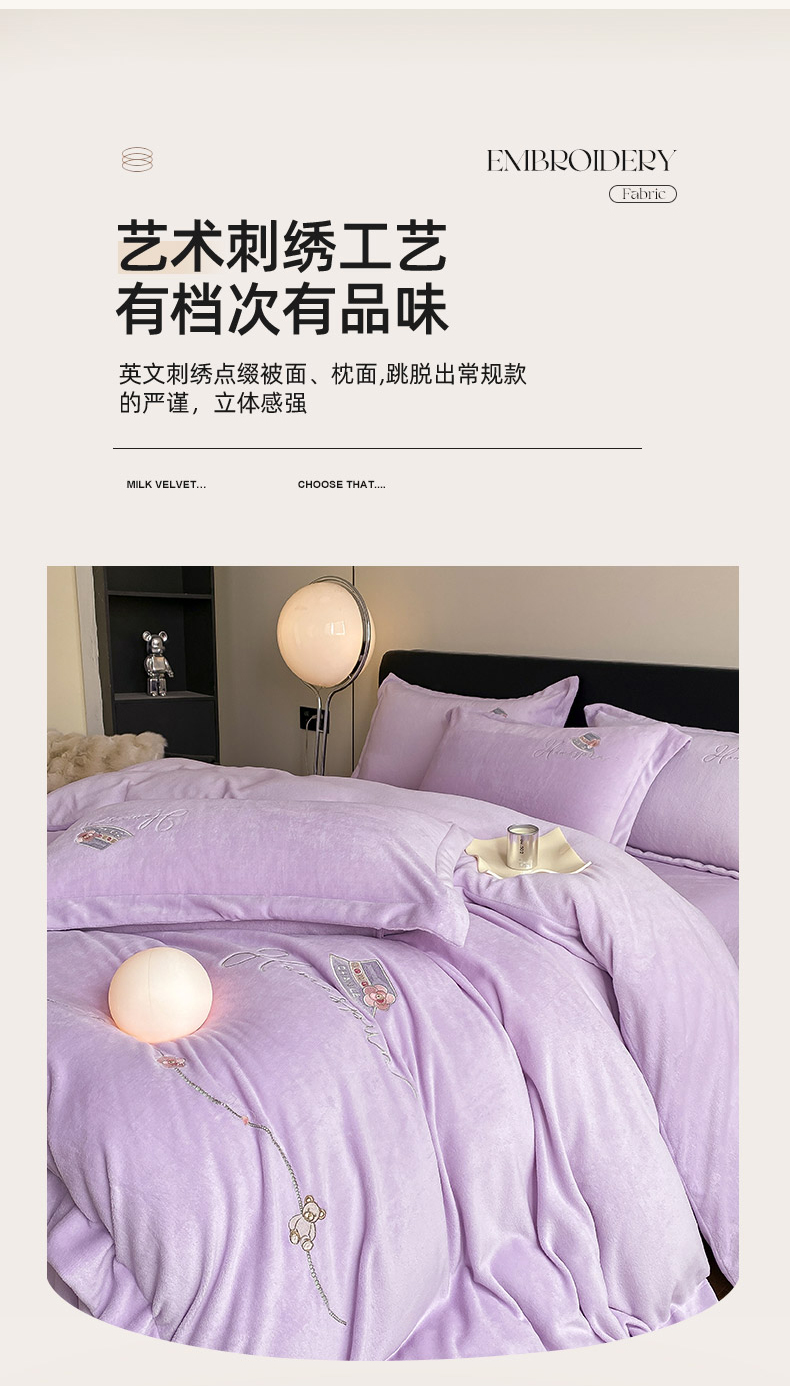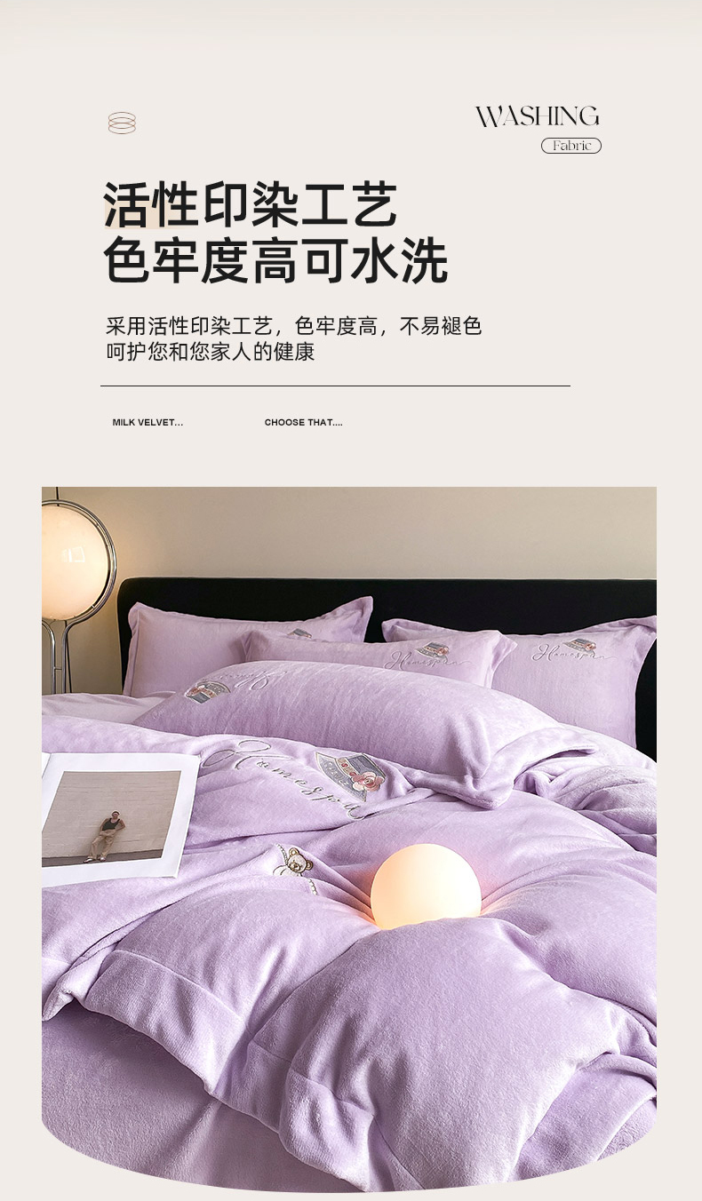 商品名称:丝印良品 2025新款秋冬加厚公主日记牛奶绒四件套 风信紫