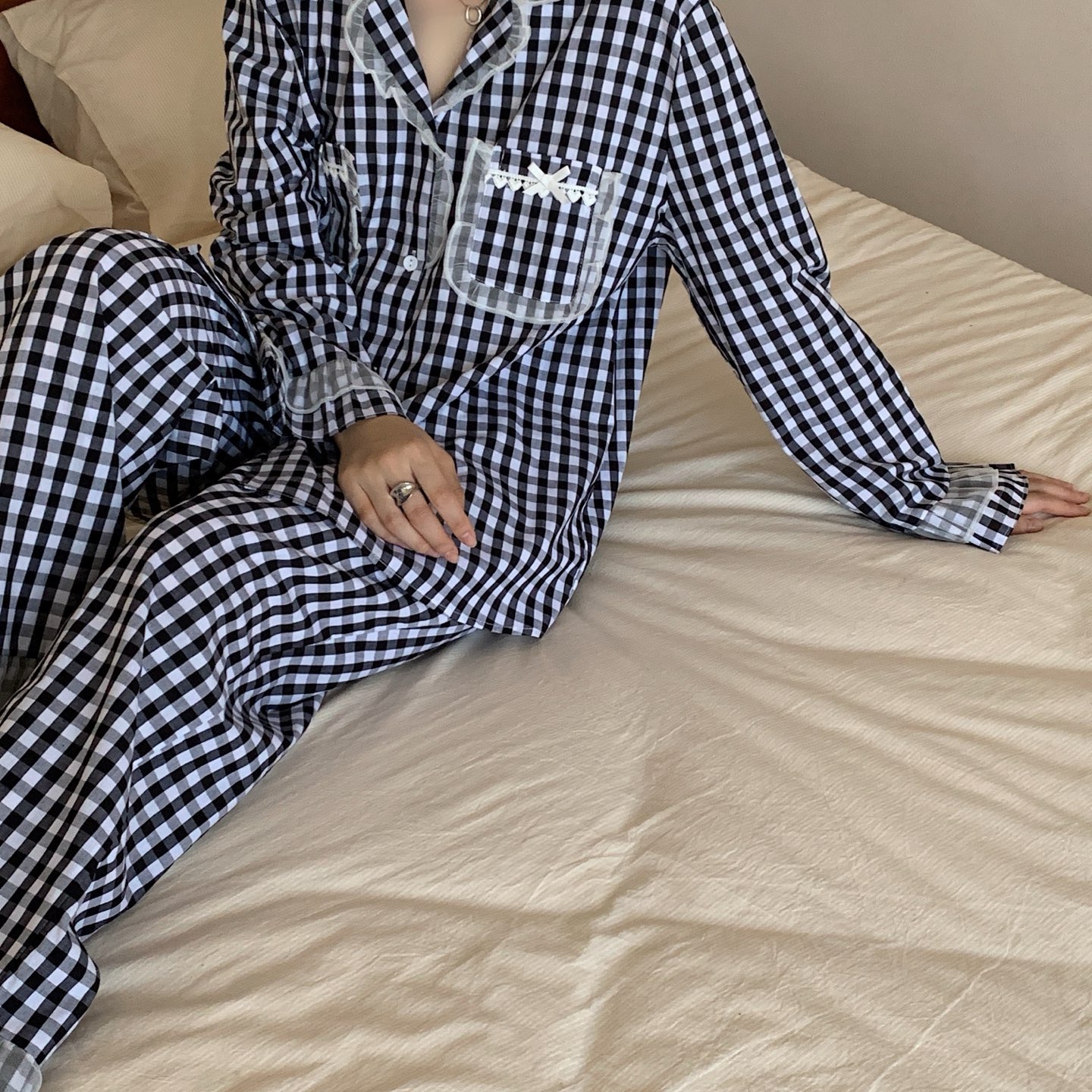 (总)妍景家居生活馆 2025新款花边格子泡泡棉简约套装