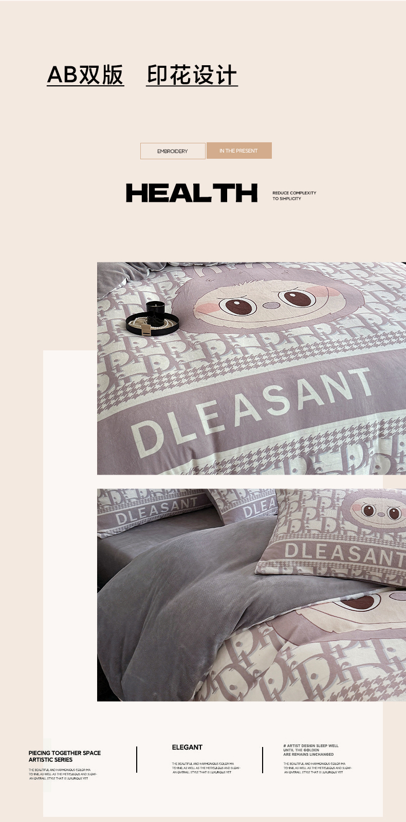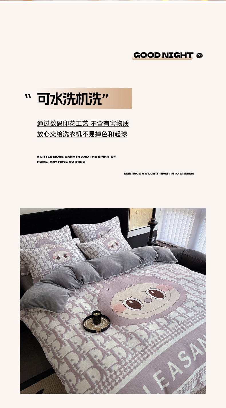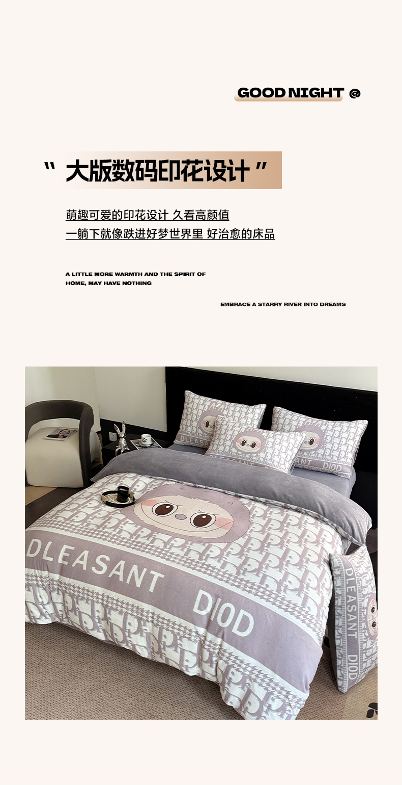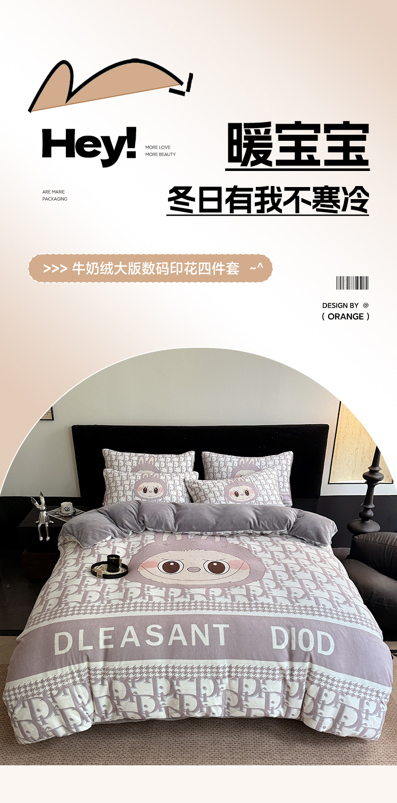 商品名称:摩卡(乐趣) 2025新款牛奶绒大版数码印花四件套(提供买家秀) 萌萌兔