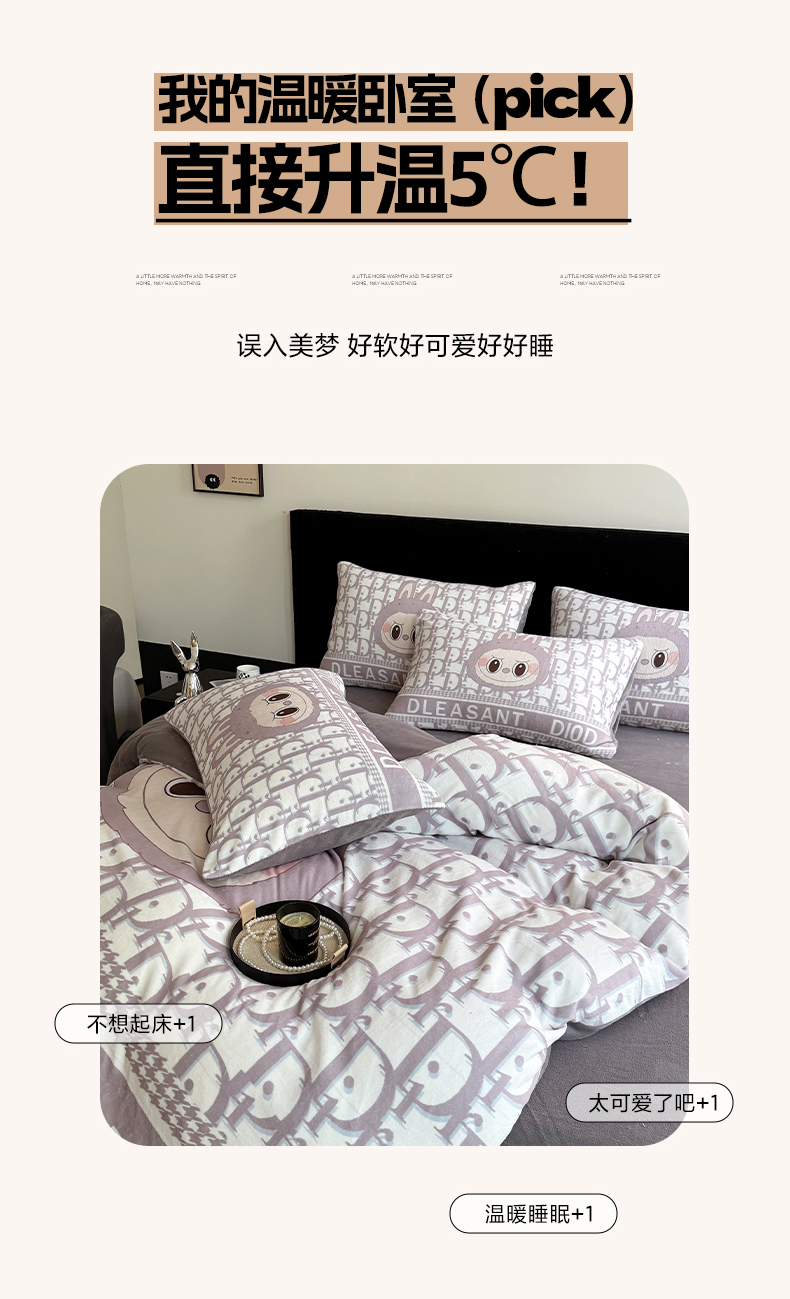 (总)摩卡(乐趣) 2025秋冬新品网红款水洗棉四季款四件套,豹纹熊-粉,豹纹熊-绿,彩虹兔,公仔蓝,梦幻粉,梦幻蓝,棋盘格公仔,太阳花粉,天使熊-粉,天使熊-咖,小熊头,熊头白,熊头橙,熊头咖,熊仔白