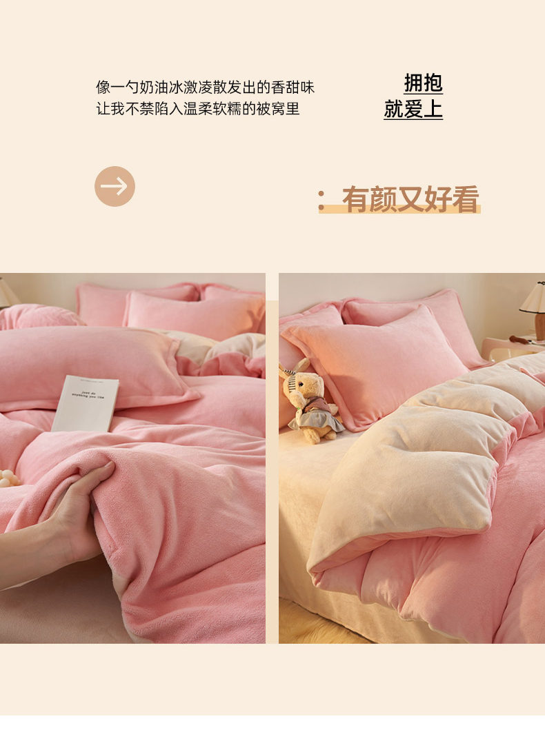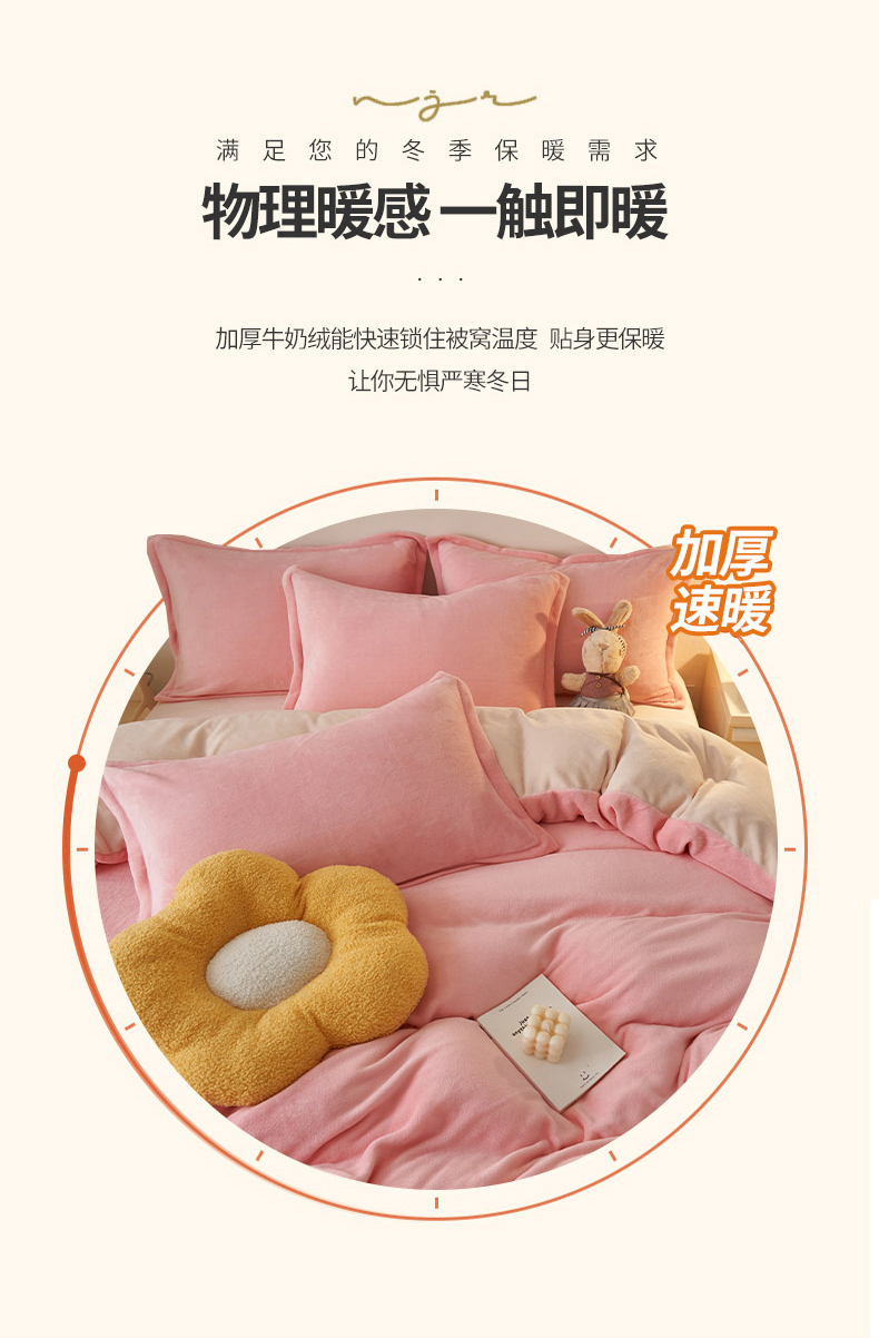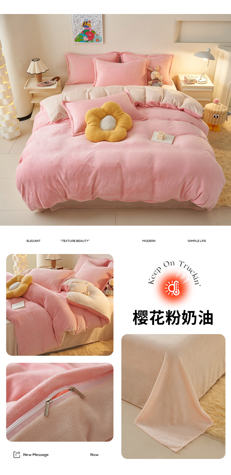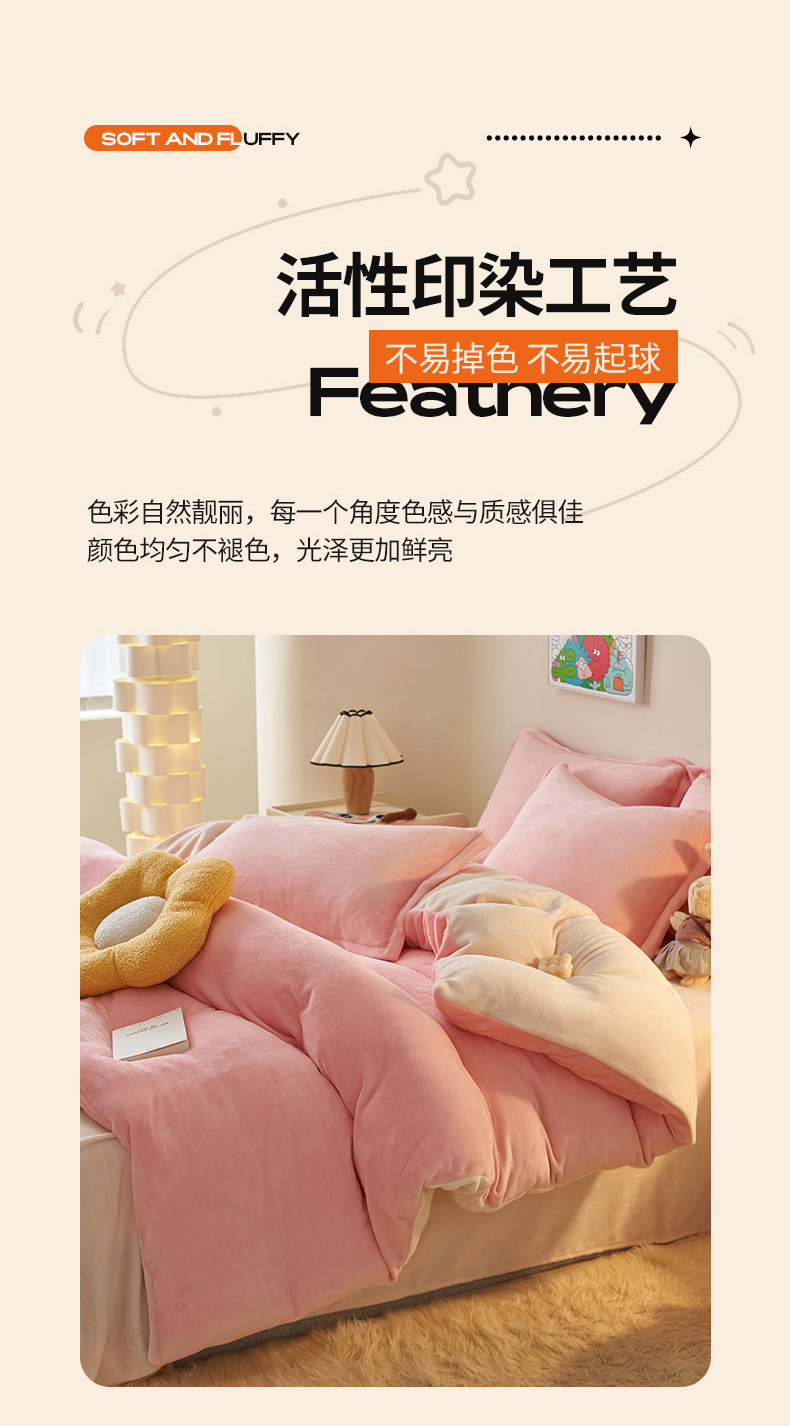 (总)2025新款多巴胺小红书纯色牛奶绒四件套牛奶绒被套跨境定制-风格二