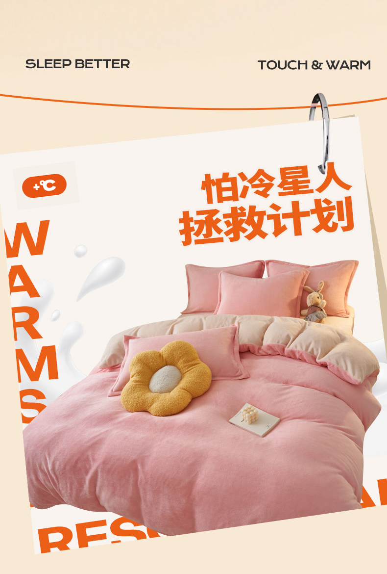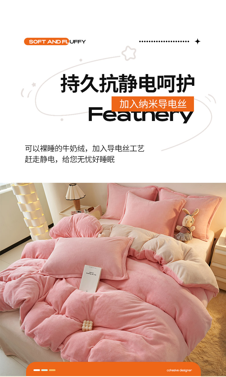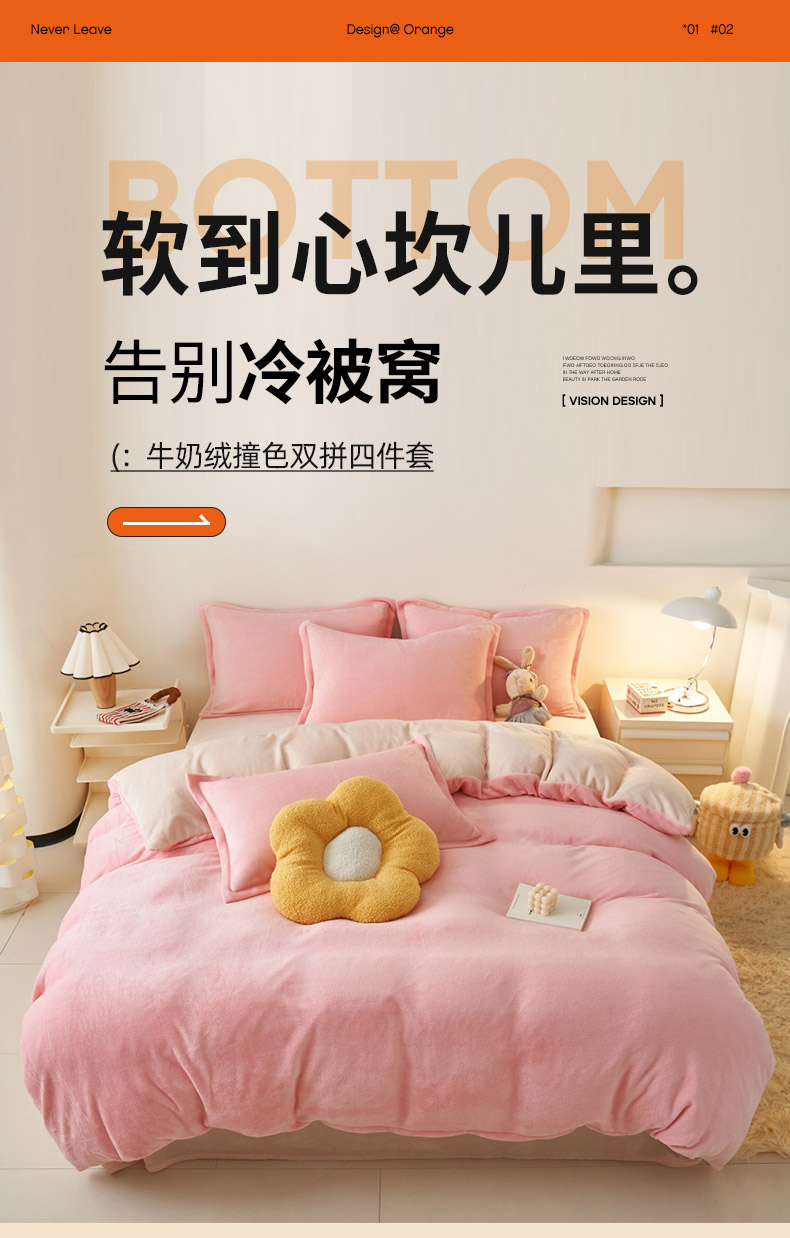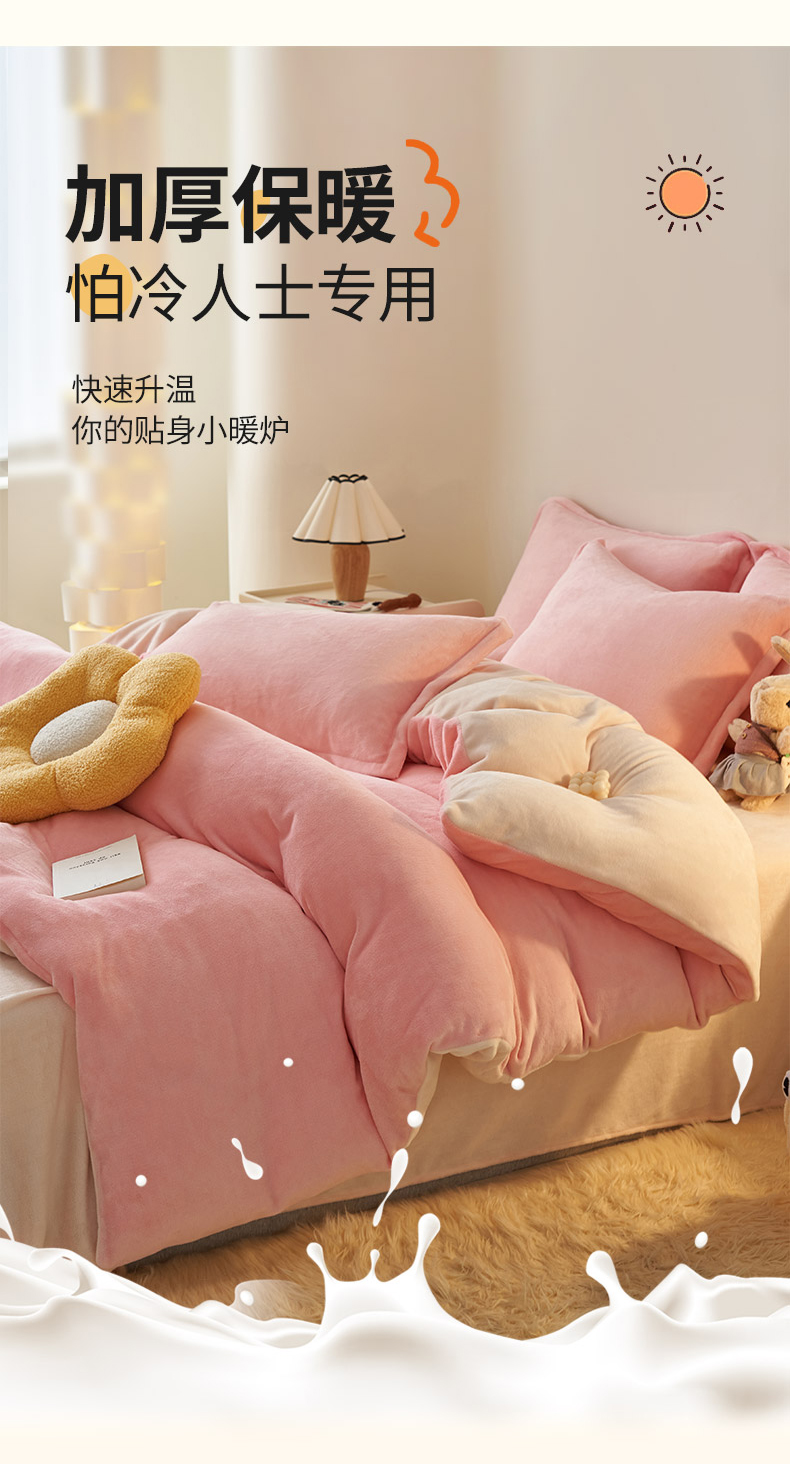(总)2025新款多巴胺小红书纯色牛奶绒四件套牛奶绒被套跨境定制-风格二