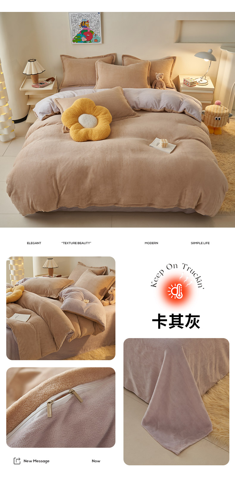 当前位置: 91家纺网 > 商品网购 > 床品套件 > 四件套 > 牛奶绒四件套 > 2025新款多巴胺小红书纯色牛奶绒四件套牛奶绒被套跨境定制-风格二 卡其灰色