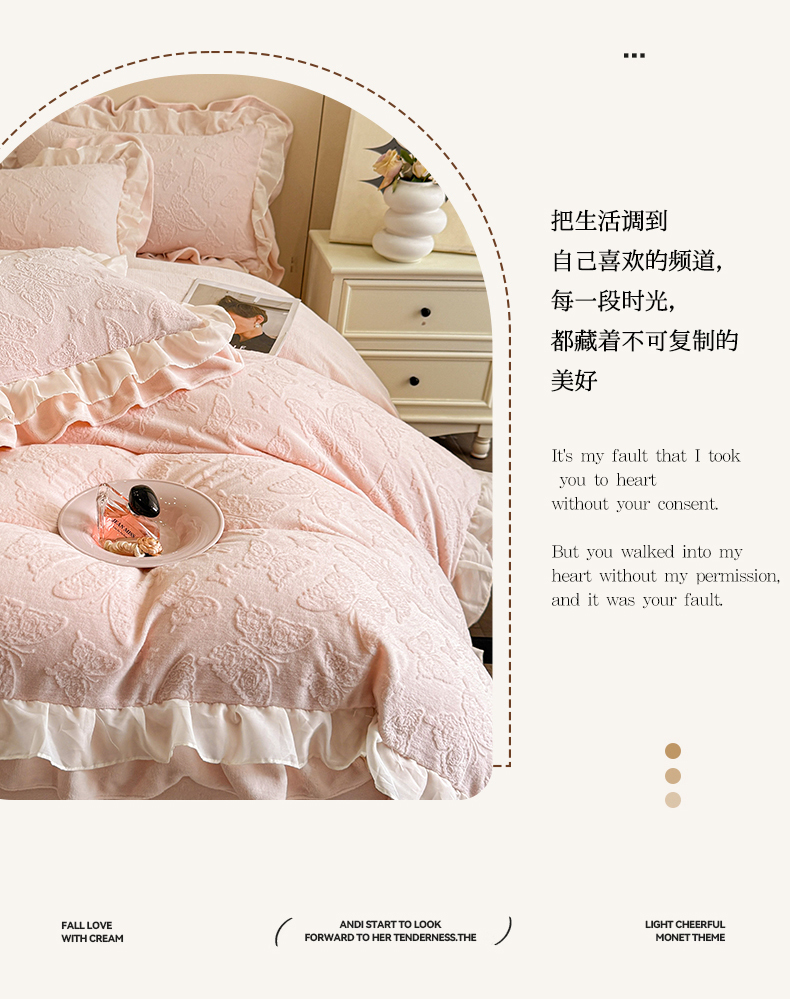 (总)爱家(原缔乐家纺) 2025新款牛奶雕花绒四件套-香香公主,香香公主-公主粉,香香公主-梦幻紫,香香公主-奶油黄