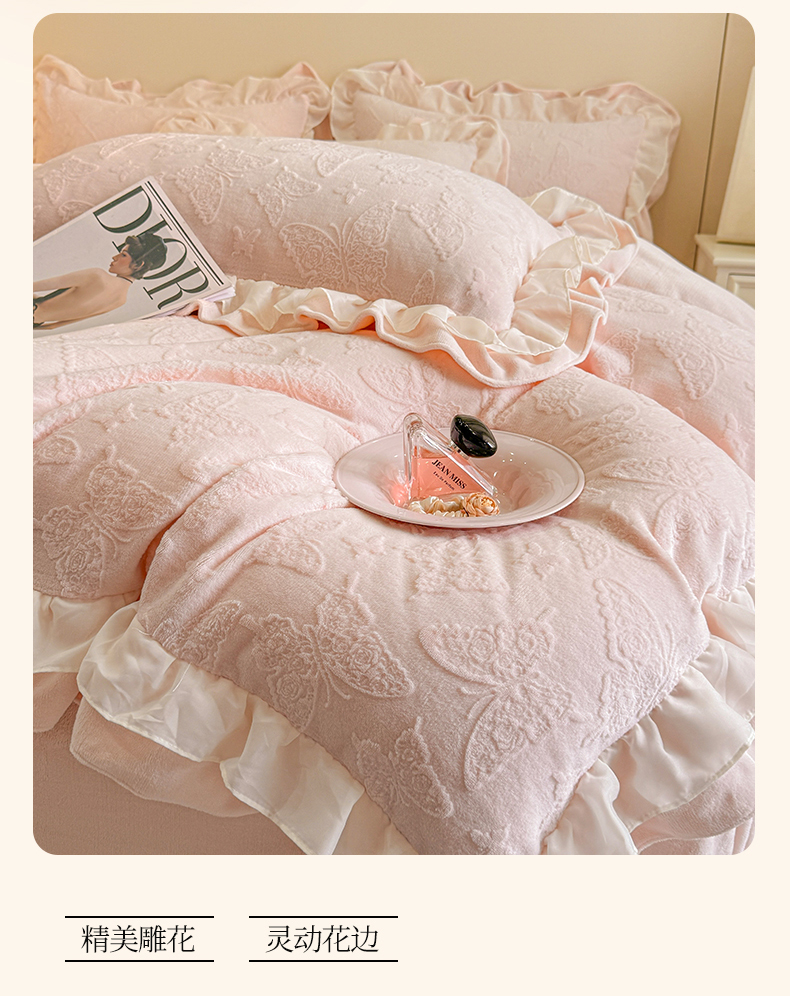 (总)爱家(原缔乐家纺) 2025新款A类牛奶雕花绒四件套 山茶花-蝴蝶之恋系列(床盖加20)