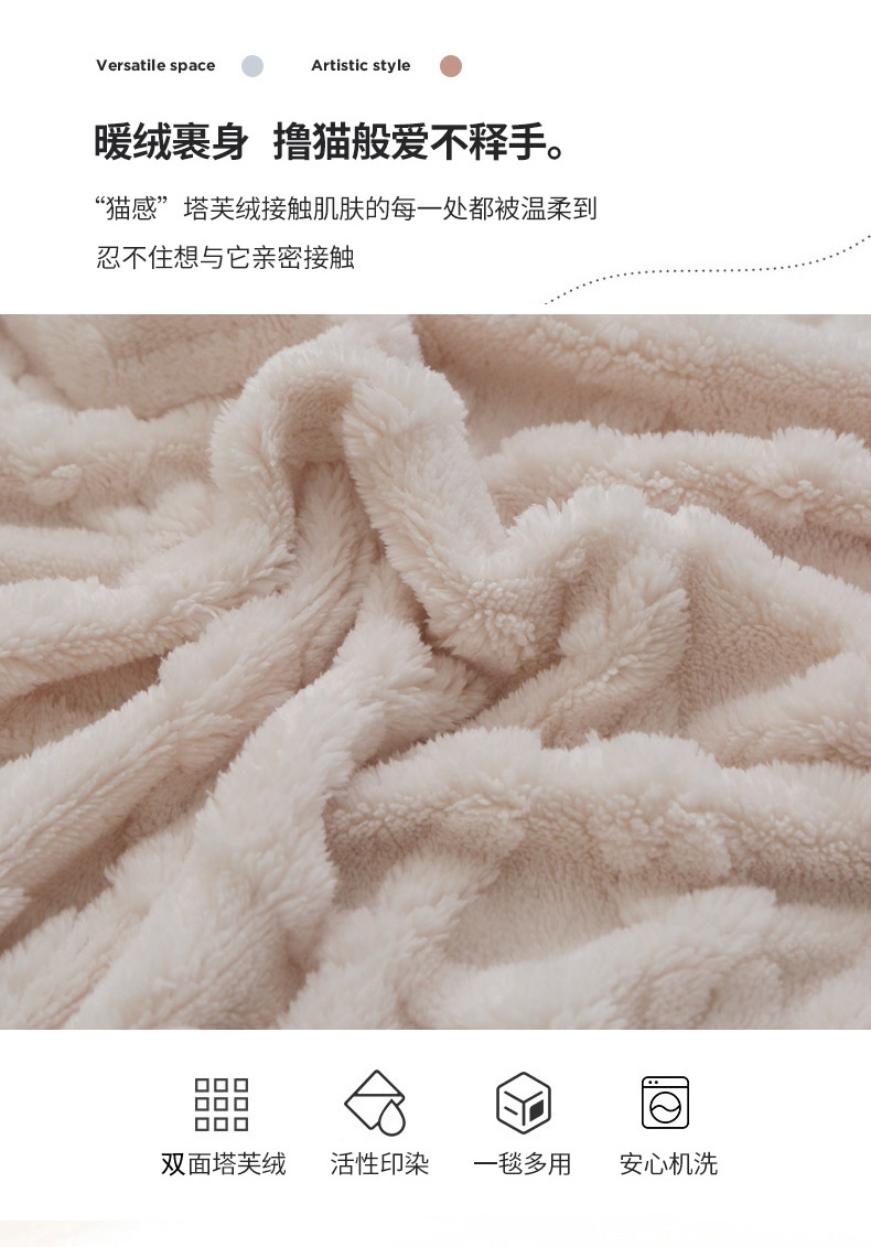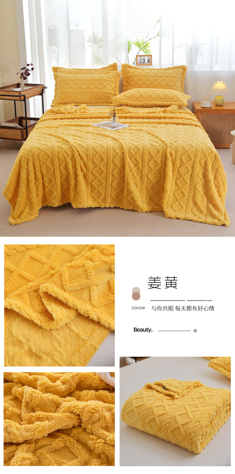 栩裕纺织 2025新款双面塔芙绒毛毯家用毯子卷边款 塔夫绒-姜黄
