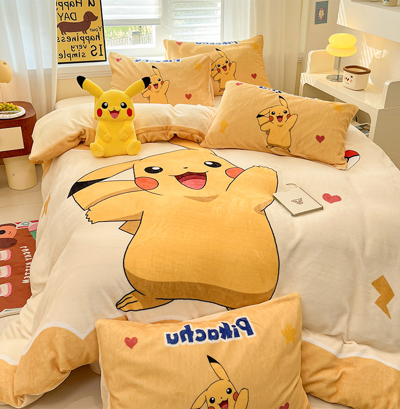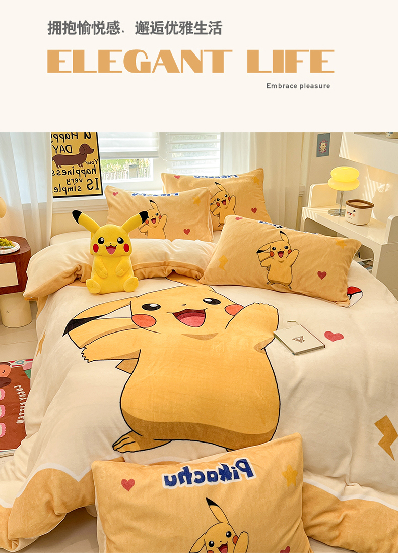 当前位置: 91家纺网 > 商品网购 > 床品套件 > 四件套 > 牛奶绒四件套 > 金爱家 2025新品大版卡通平网数码印花加厚高克重牛奶绒皮卡丘系列四件套 绒小版-搞怪皮卡丘