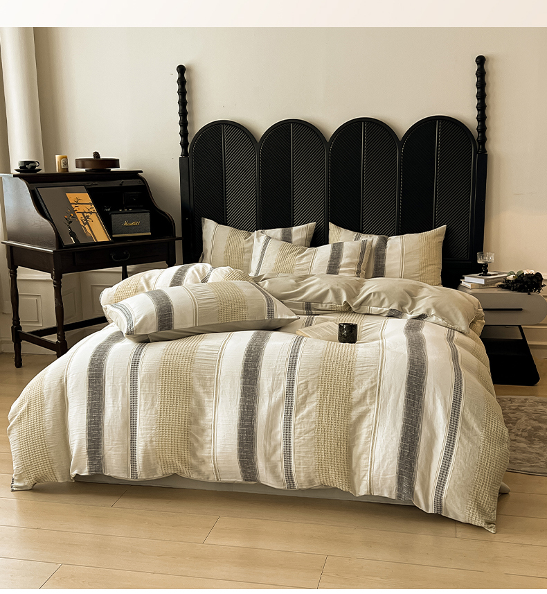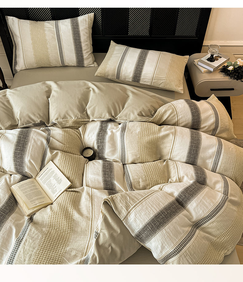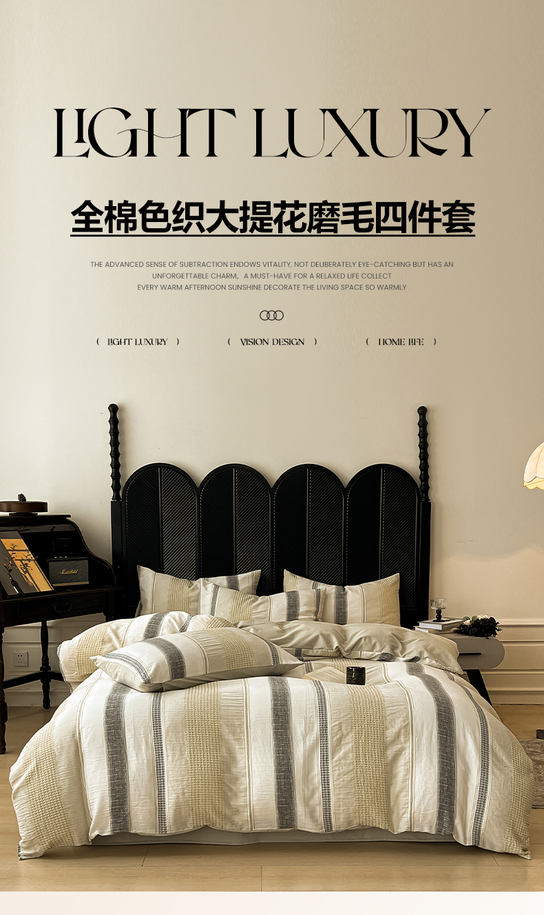 (总)莱茵家居 2026新款A类60支全棉纯棉复古侘寂风色织提花四件套-墨隙系列,斑斓-深灰,豹纹-卡其,豹纹-深灰,墨隙-卡其,墨隙-深灰