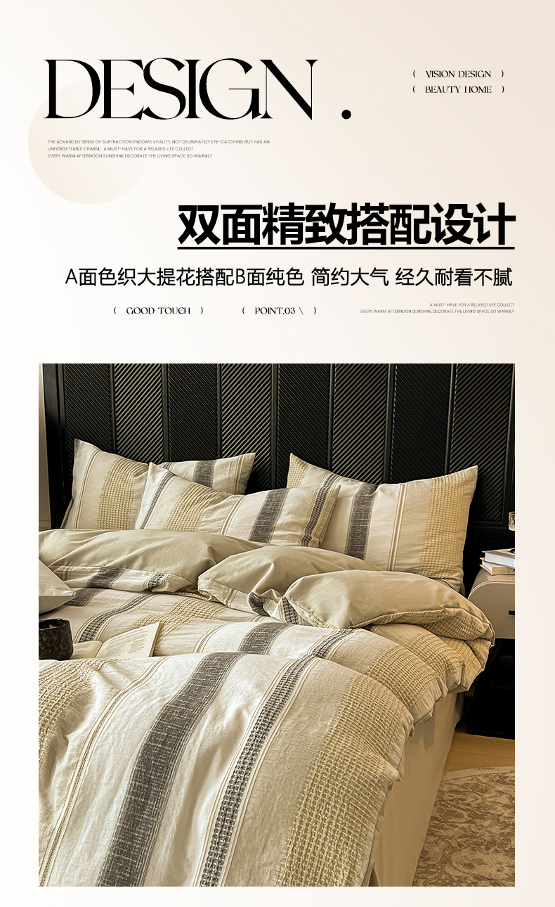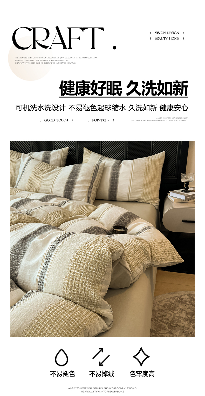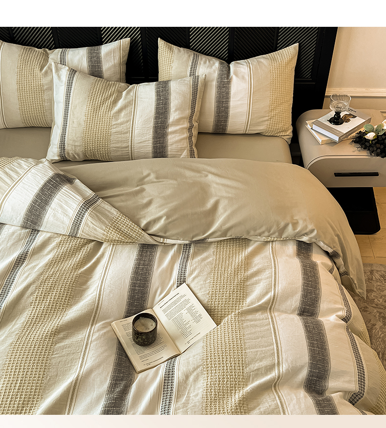 (总)莱茵家居 2026新款A类全棉色织日系芝麻锻纹套件-暮云系列,暮云-白灰,暮云-灰白,暮云-棕咖,暮云-米白