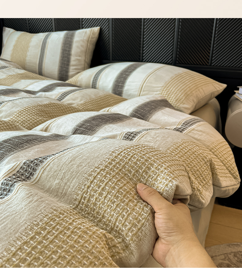 莱茵家居 2025新款A类简约60S色织提花磨毛四件套 丝序-浅茶灰