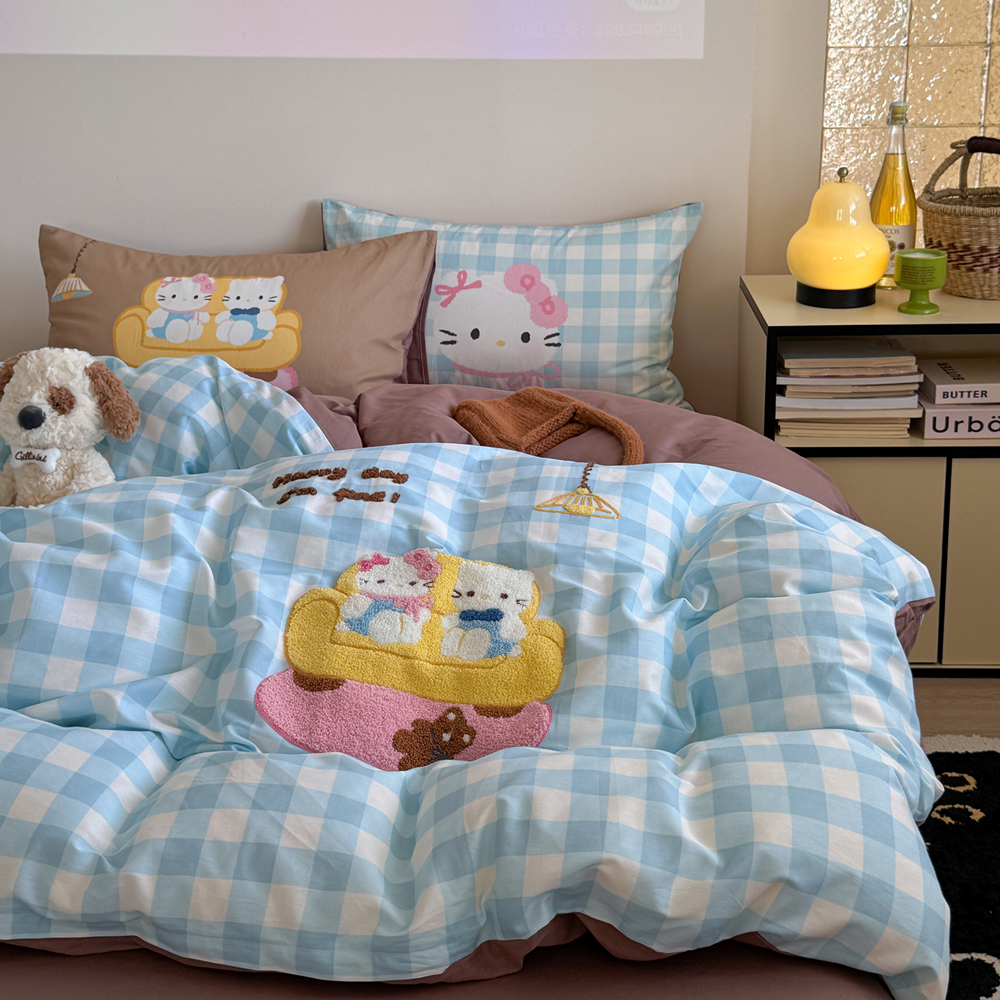 (总)美乐迪家纺 2025新款加厚牛奶绒花边四件套,许愿小狗,小猫的家,香肠狗,头套小兔,甜心派对,甜品小兔,猫咪日记,蓝色小狗,黄油小狗,烘焙熊