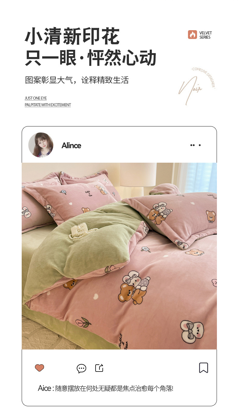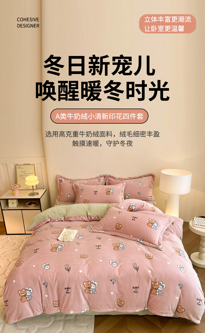 当前位置: 91家纺网 > 商品网购 > 床品套件 > 四件套 > 牛奶绒四件套 > 富馨莱 2025新款牛奶绒印花四件套240克面料支持一件定制尺寸 小伙伴