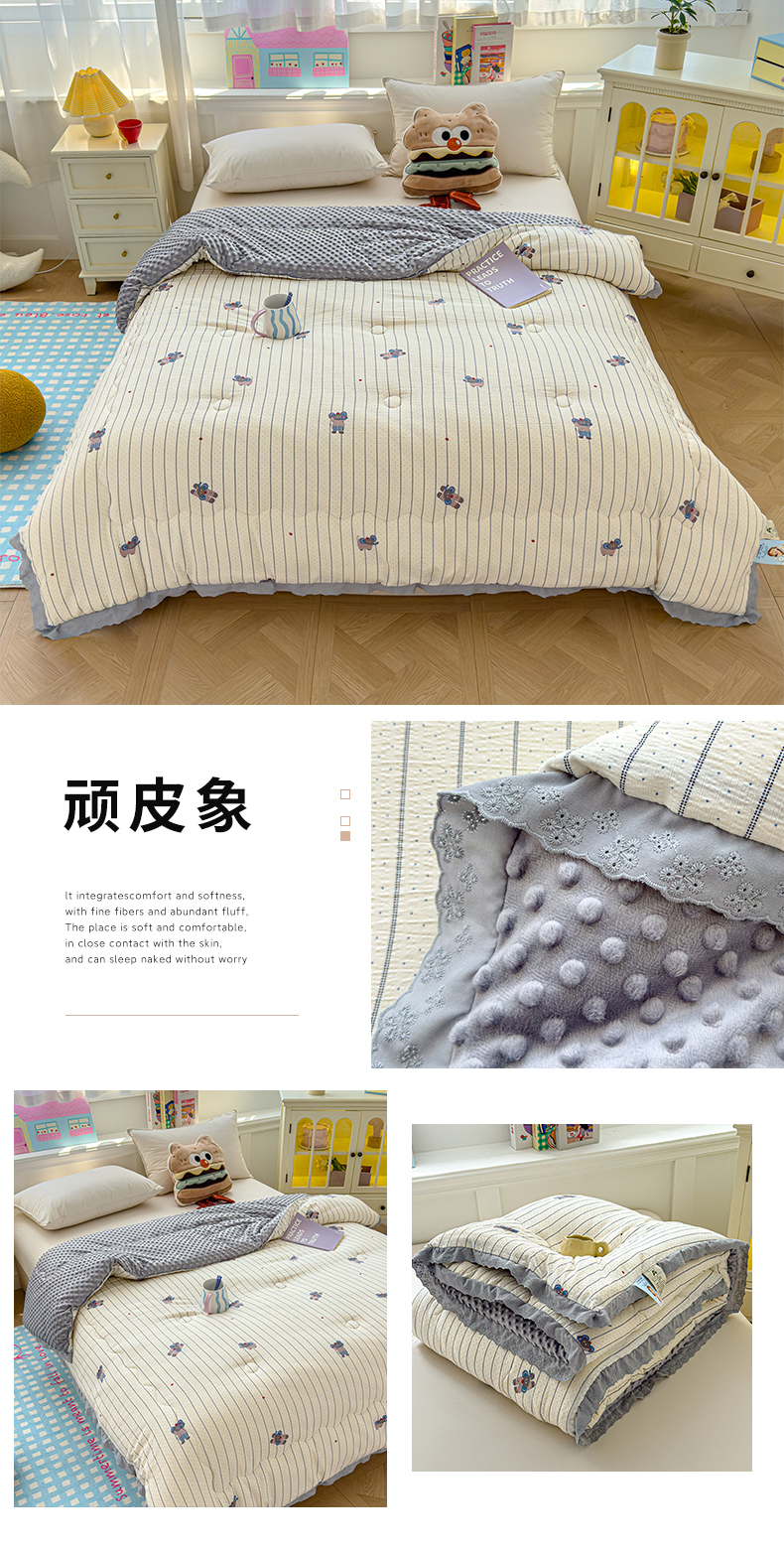 (总)芯恋家居 2025新款小香风A类母婴级全棉双层纱宝宝绒豆豆被保暖四季被冬被,小香织带熊-粉灰,小香织带熊-奶白绿,小香织带熊-雾霾灰,小香织带熊-浅紫灰,小香织带熊-蓝灰,小香织带熊-奶白蓝,小香织带熊-奶白咖,小香织带熊-奶白粉