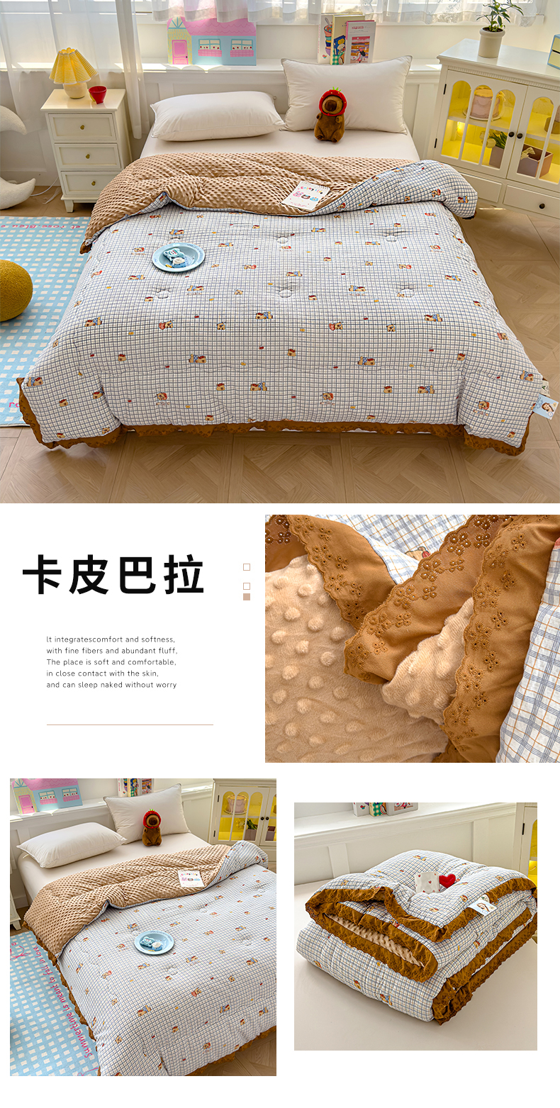 • 91家纺网 家纺一手货源 找家纺 (总)芯恋家居 2025新款A类提花韩版花边豆豆冬被被子春秋被芯大豆被豆豆被,小弯月,呆萌兔,格子萌宠,狗乐园,卡皮巴拉,玫瑰庄园,迷迭香,顽皮象,小树林,星芒小筑