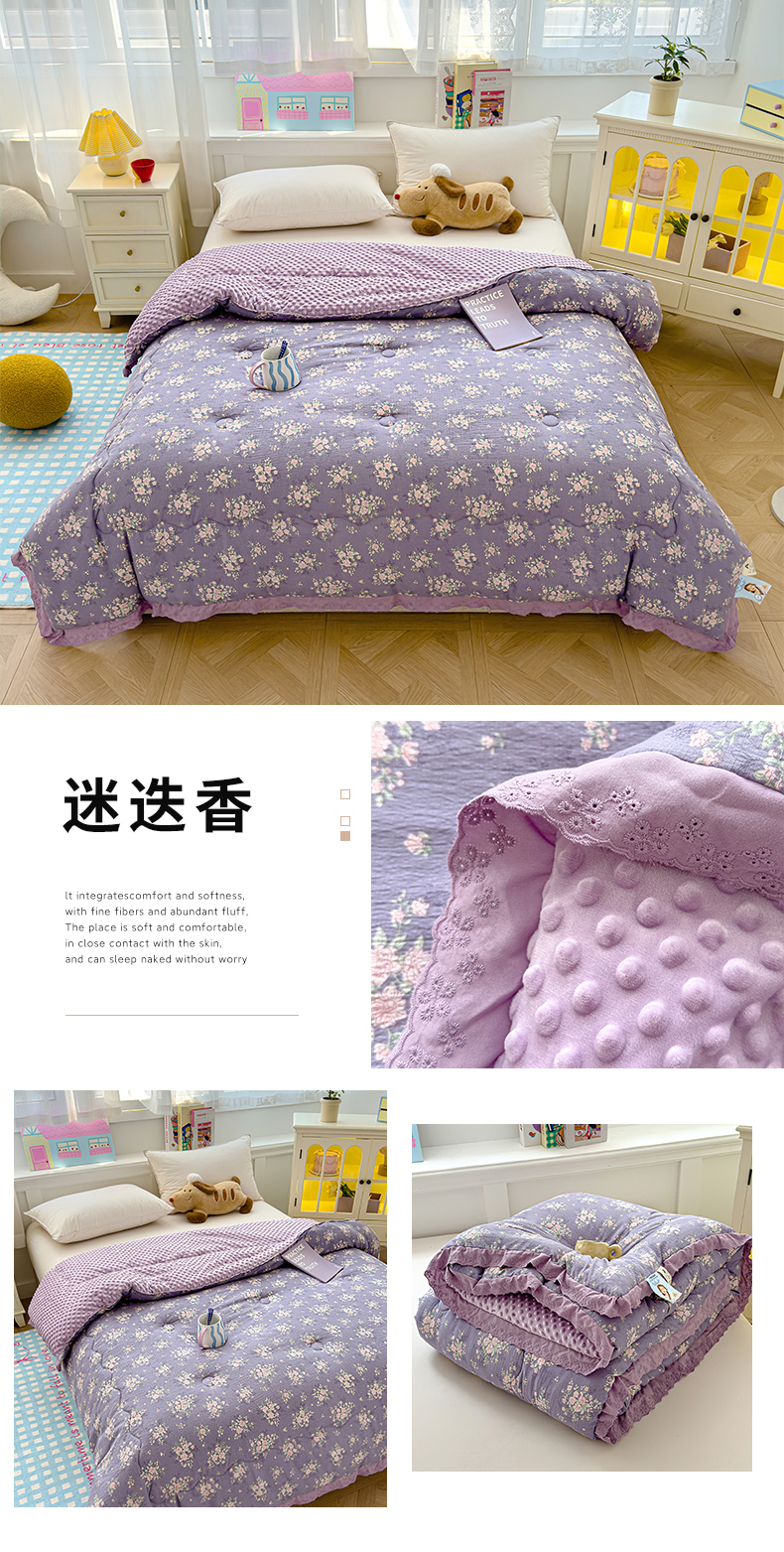 (总)芯恋 25年新款亚麻风全棉花边云感冬被四季被加厚冬被,苍兰,瑰丽,花弄影,花影,蒹葭,落霞,晚秋,云清