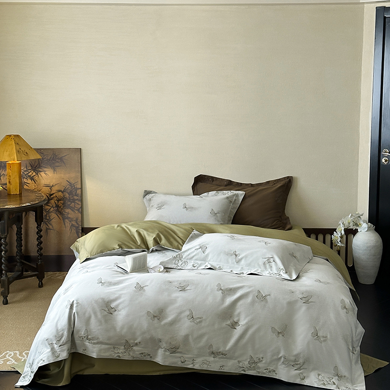 (总)赫帛 2025新款50S色织提花贡缎长绒棉四件套-蝶恋花