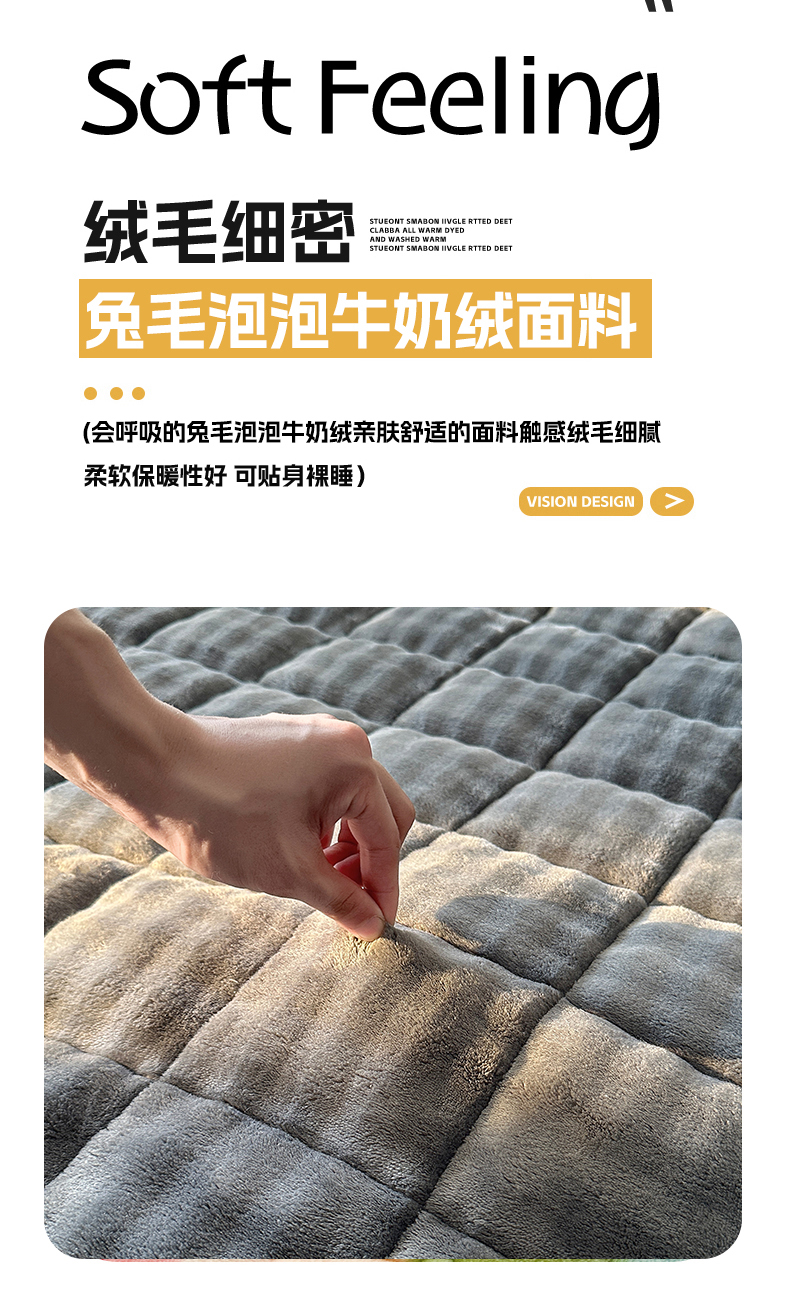 • 91家纺网 家纺一手货源 找家纺 梵朴 2025新款牛奶绒泡泡兔毛绒床垫学生宿舍床褥子-纯色系列大床图 气质灰