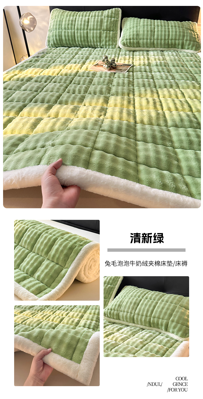 (总)梵朴 2025新款牛奶绒泡泡兔毛绒床垫学生宿舍床褥子-纯色系列大床图,夜空灰,宾利蓝,豆沙粉,气质灰,清新绿