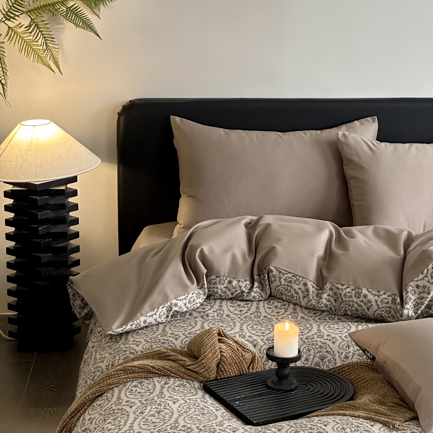 赫帛 2025新款60支全棉色织提花磨毛四件套-腰果花 腰果花-灰咖色