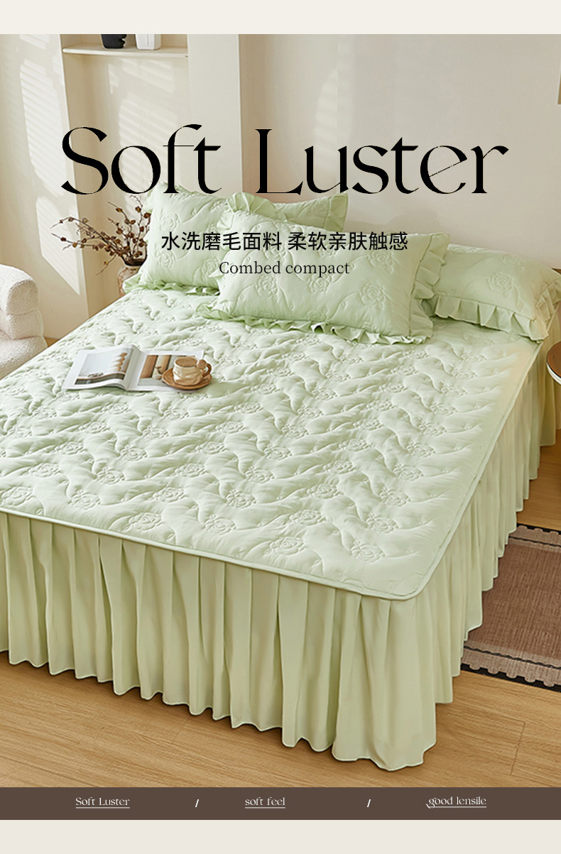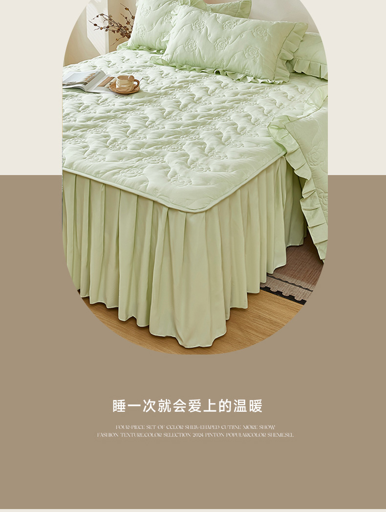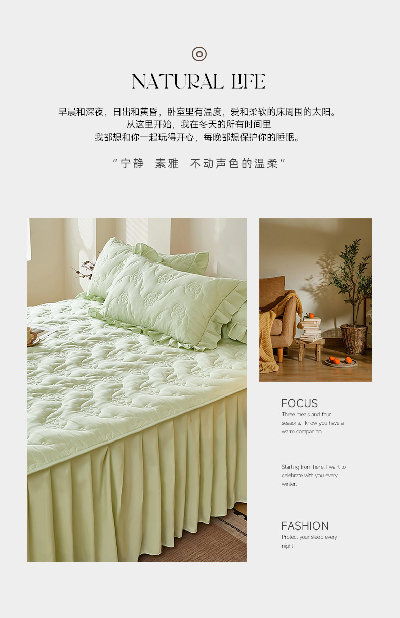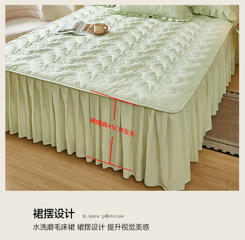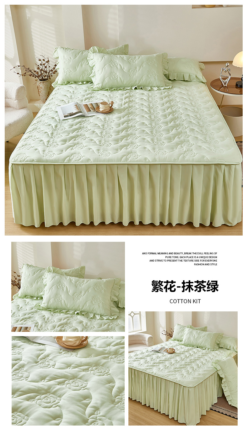 • 91家纺网 家纺一手货源 找家纺 瑞兴纺 2025年新款亲肤夹棉床笠床裙 床裙花边款:繁花-抹茶绿