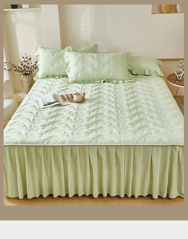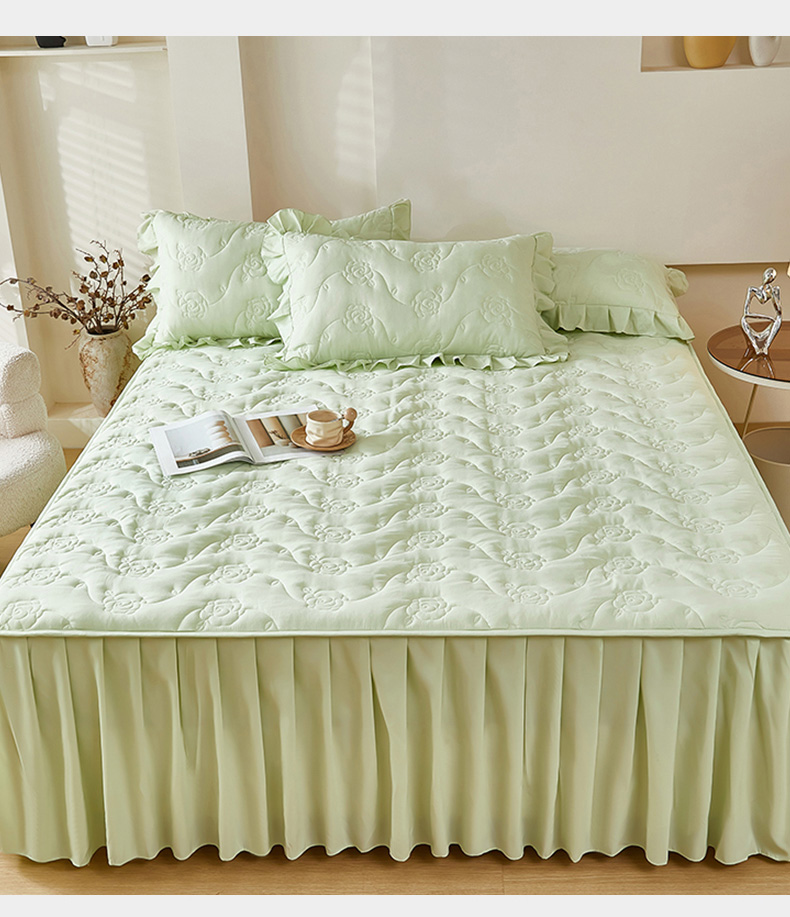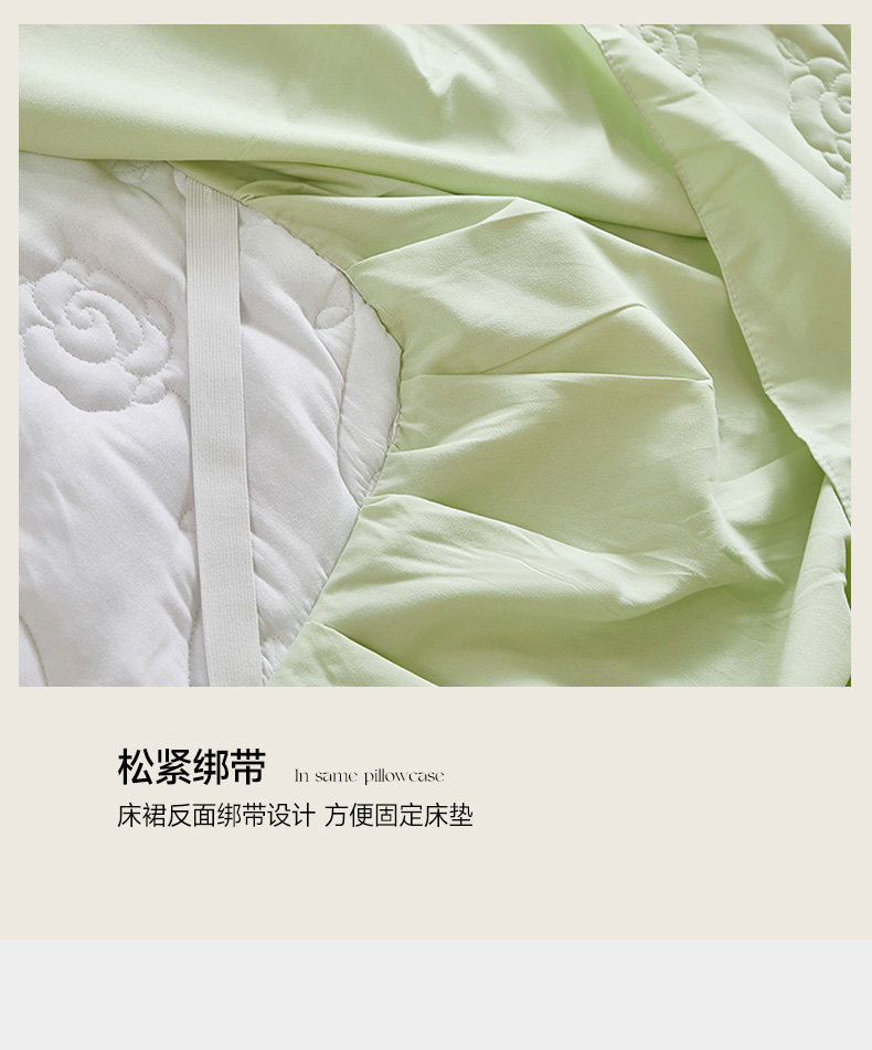 瑞兴纺 2025年新款亲肤夹棉床笠床裙 床裙花边款:繁花-抹茶绿
