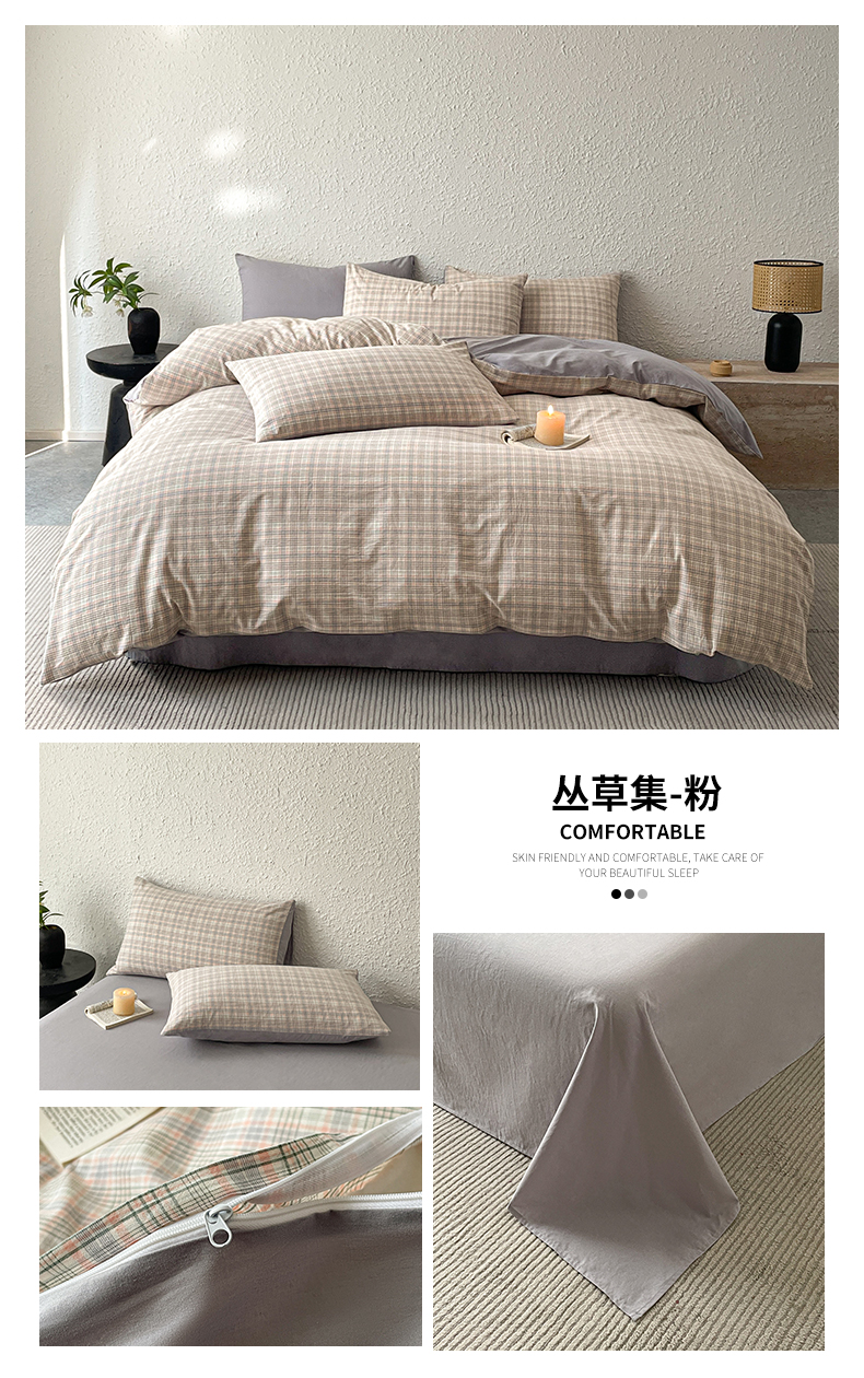 商品名称:曲之慕 2025新款亲肤舒适全棉纯棉色织水洗棉四件套 夕颜-粉