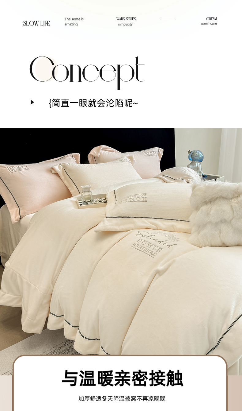 (总)席之家 2025新款刺绣牛奶绒四件套,花语-卡其玉,花语-奶咖,花语-青柠绿,花语-少女粉