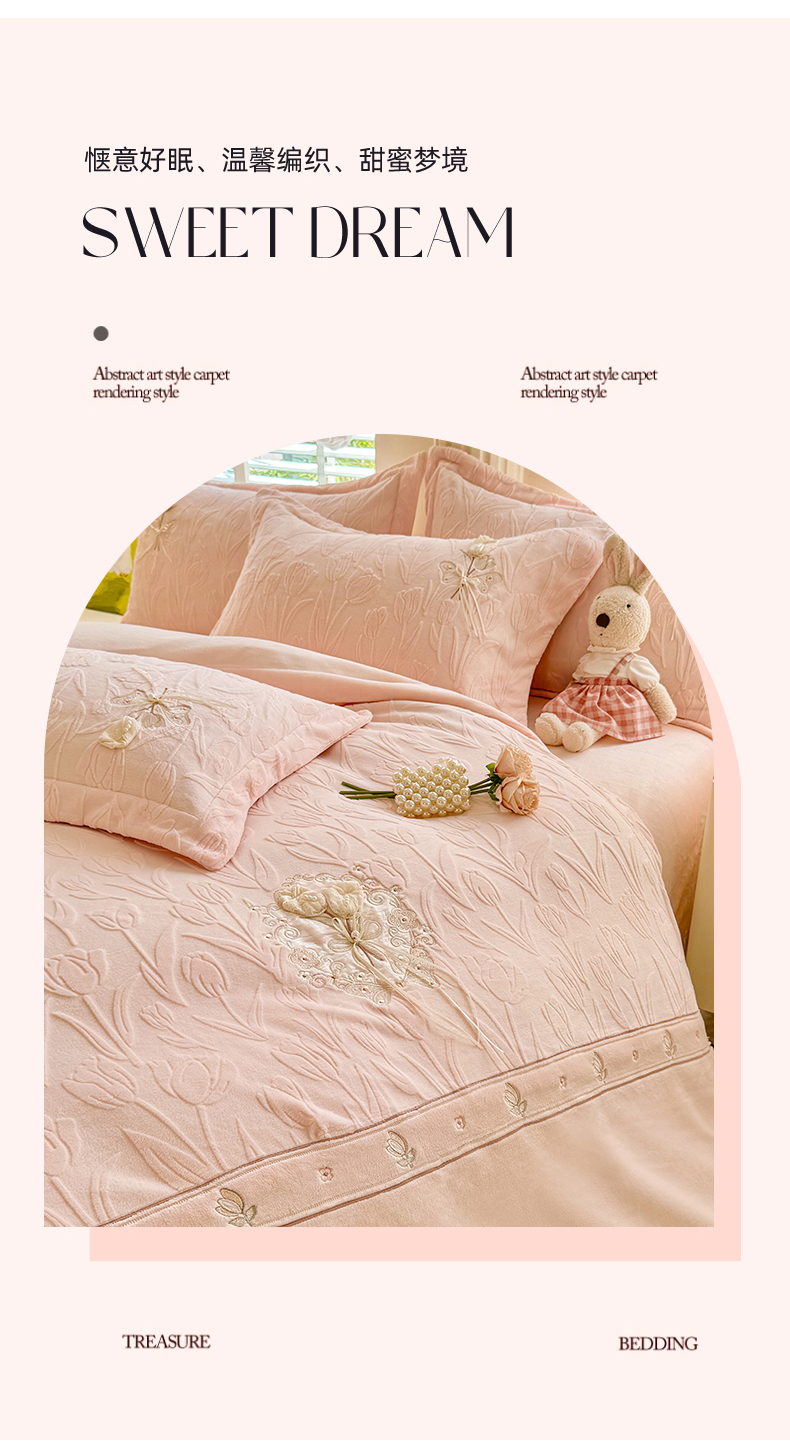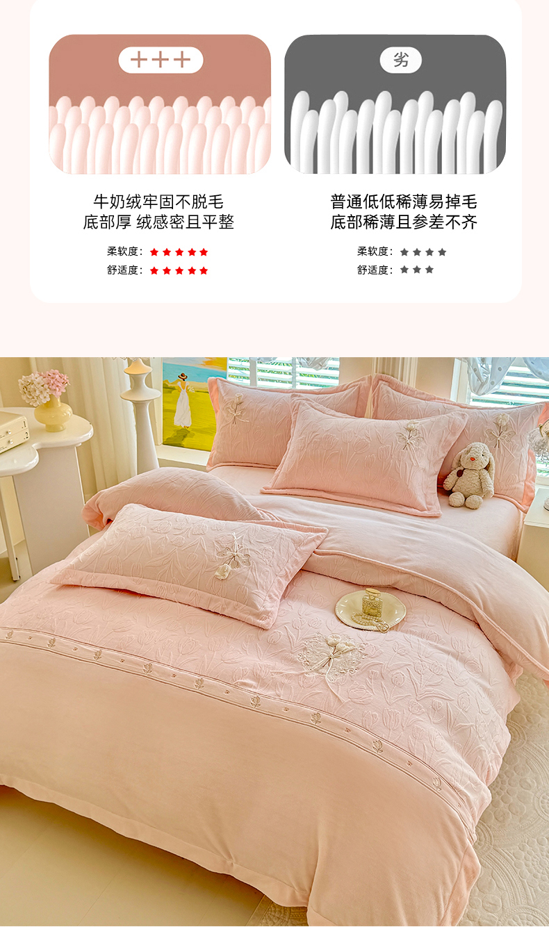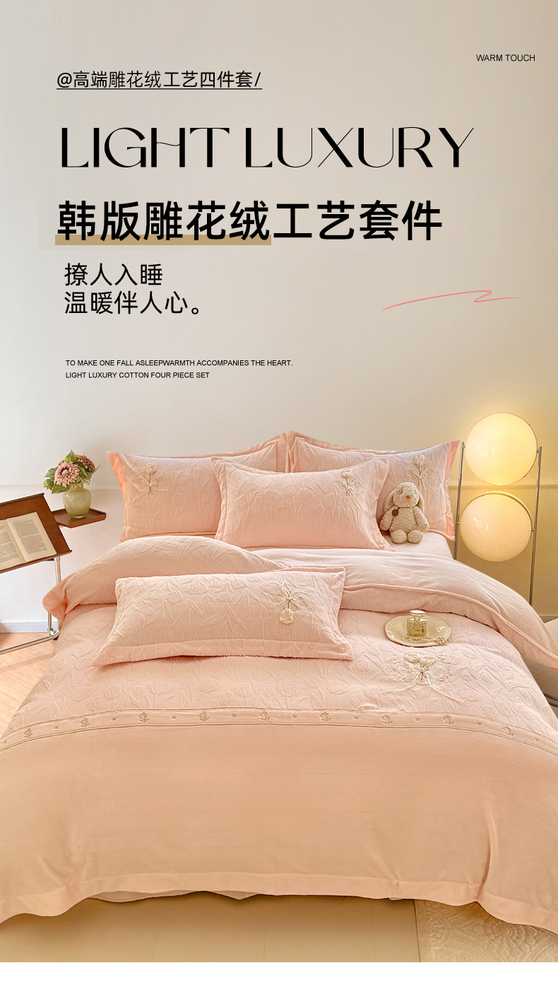 当前位置: 91家纺网 > 商品网购 > 床品套件 > 四件套 > 牛奶绒四件套 > 艾唯希家纺 2025新款韩版全消光雕花绒工艺四件套牛奶绒-郁金之恋 郁金之恋-粉