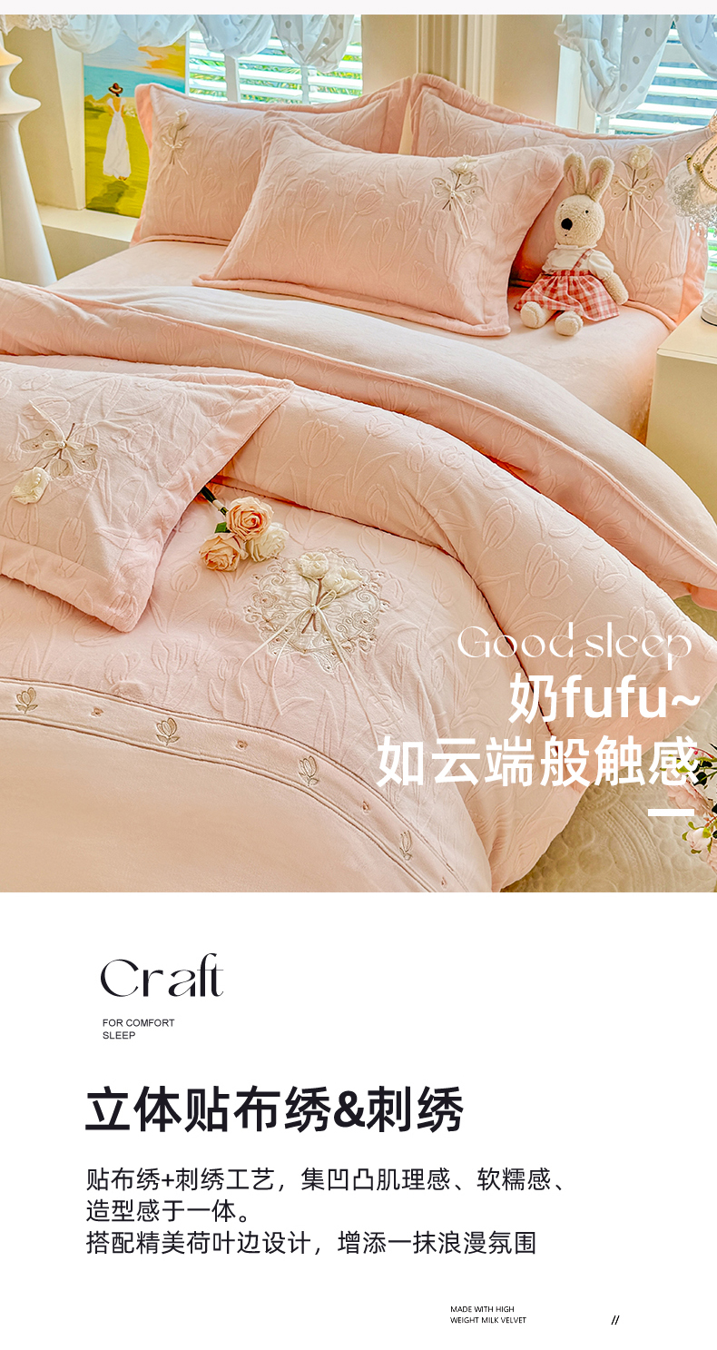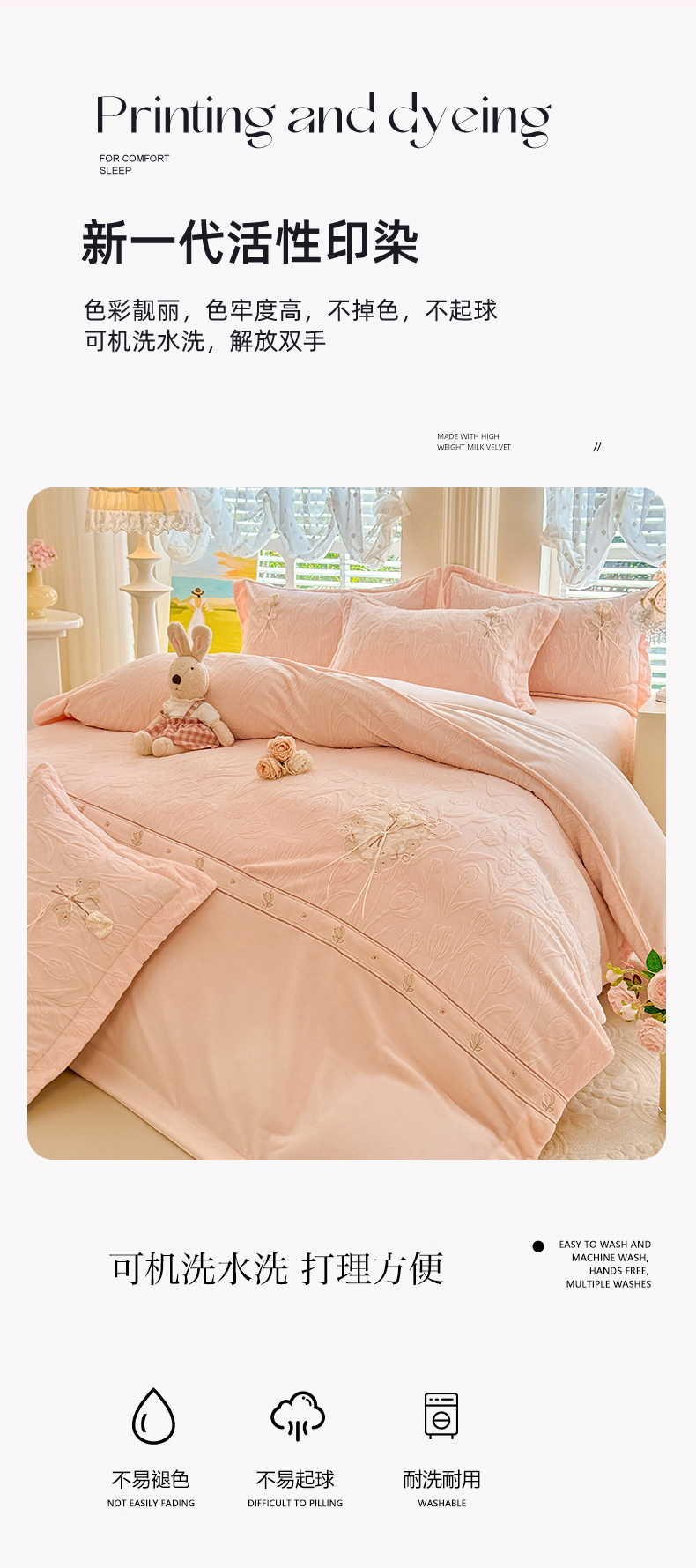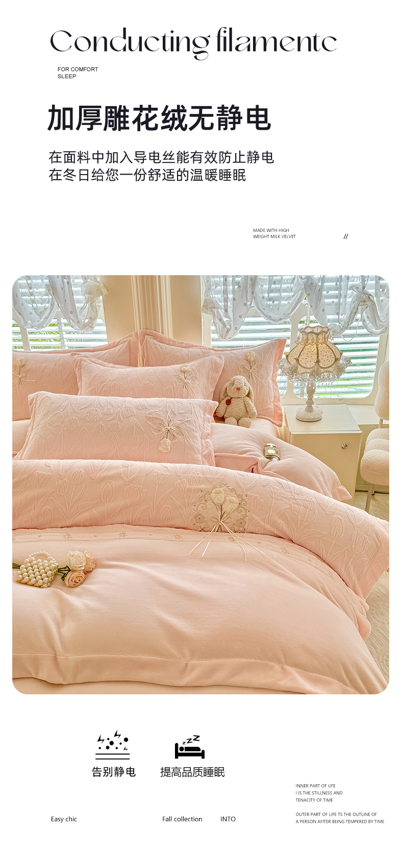 当前位置: 91家纺网 > 商品网购 > 床品套件 > 四件套 > 牛奶绒四件套 > 艾唯希家纺 2025新款韩版全消光雕花绒工艺四件套牛奶绒-郁金之恋 郁金之恋-粉