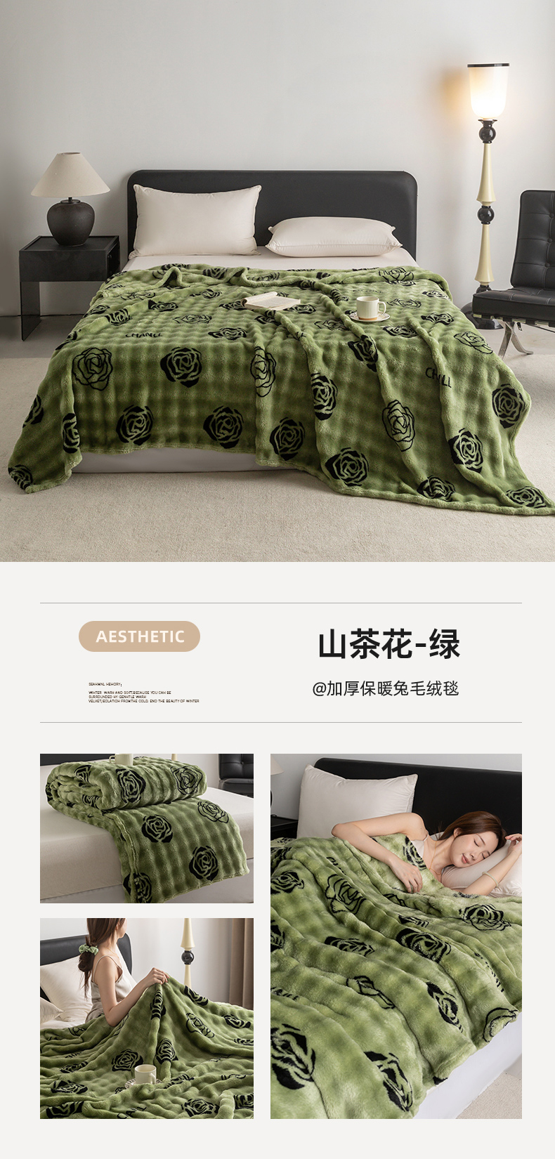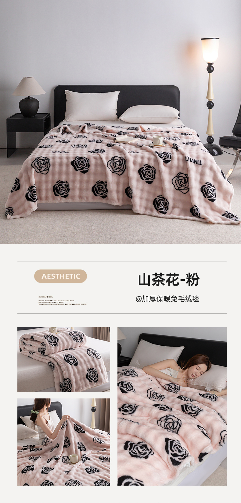 (总)安琪家纺 2025新款爆品temu希音TK350g山茶花仿兔毛绒毯休闲大泡泡毯跨境外贸出口 ,山茶花-白,山茶花-粉,山茶花-灰,山茶花-绿