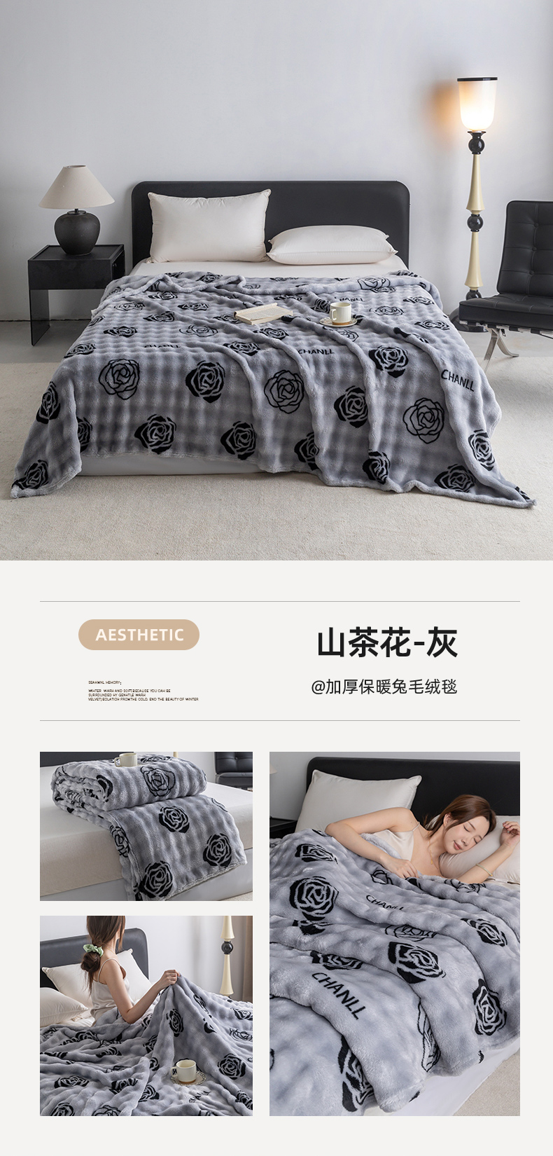 商品名称:安琪家纺 2025新款爆品temu希音TK350g山茶花仿兔毛绒毯休闲大泡泡毯跨境外贸出口 山茶花-灰