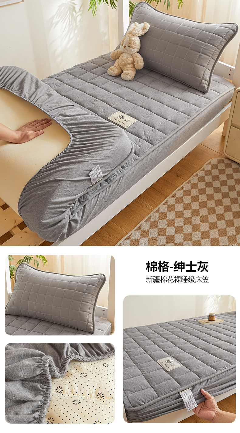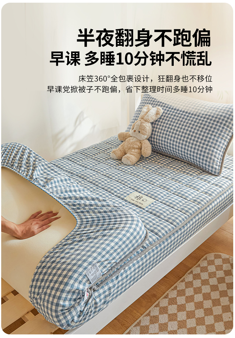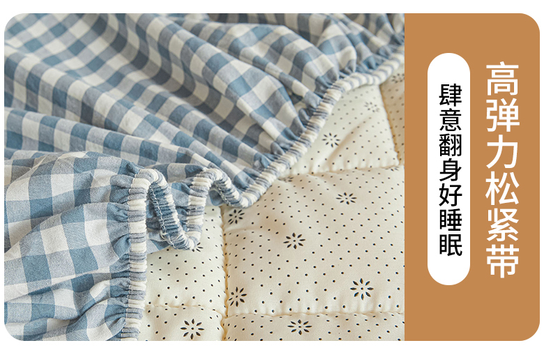 (总)鑫钰 2025新款A类纯棉夹棉床笠学生宿舍专用90x190-80x190-花漾山茶格,花漾山茶格-粉,花漾山茶格-蓝,花漾山茶格-灰