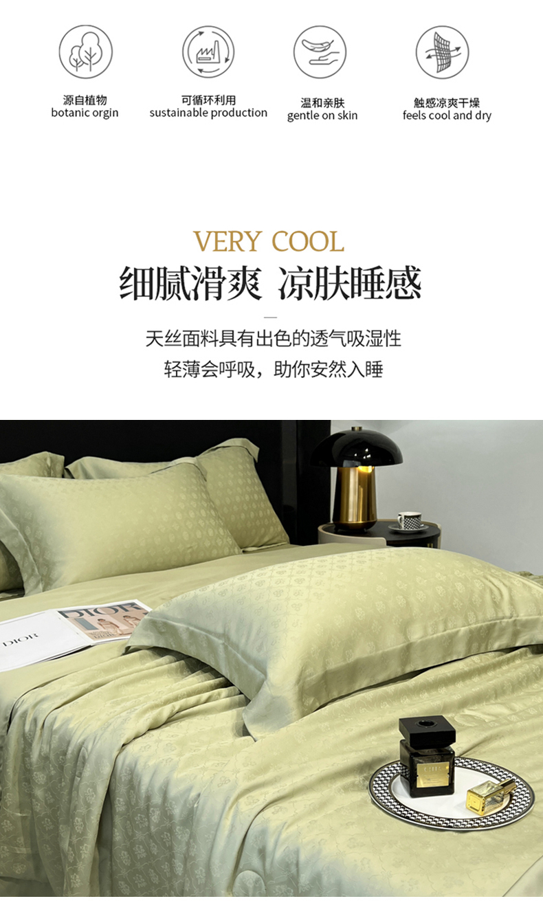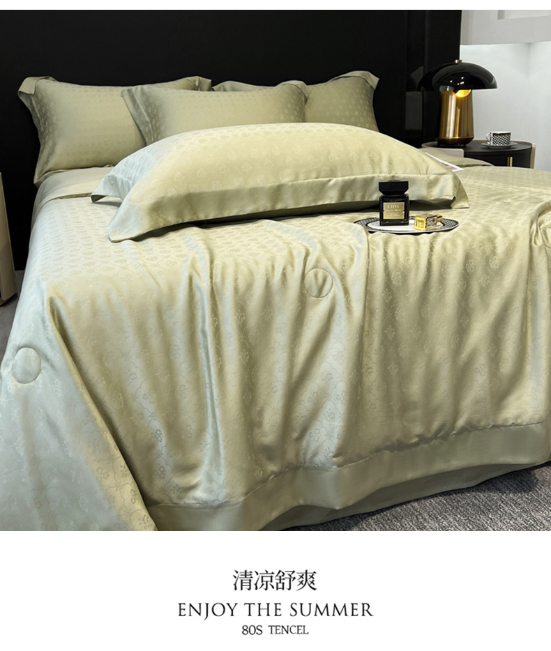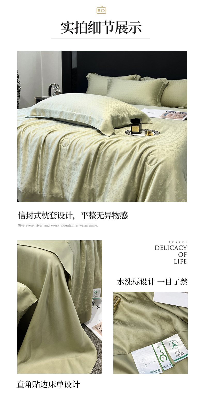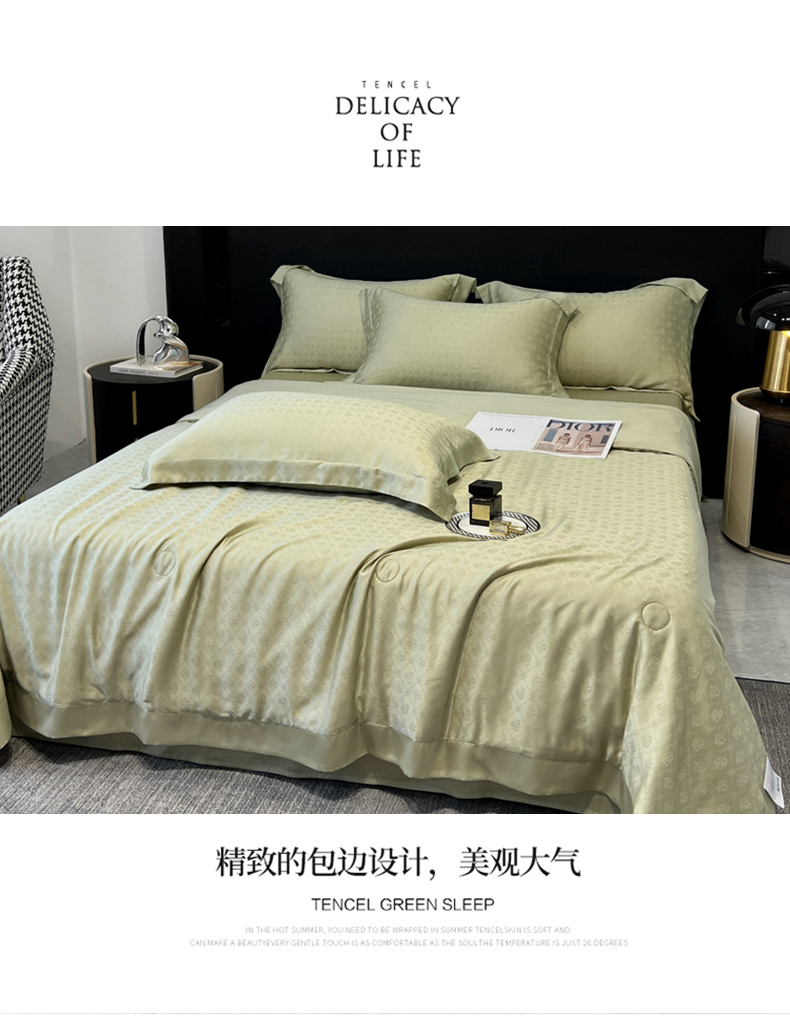 • 91家纺网 家纺一手货源 找家纺 梵克保罗 2025春夏新款莱赛尔兰精天丝提花单夏被空调被夏被四件套 夏日绿