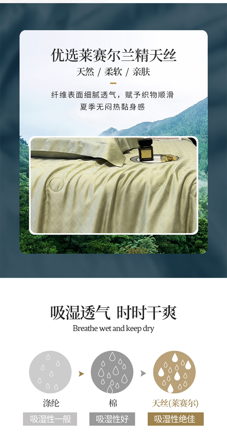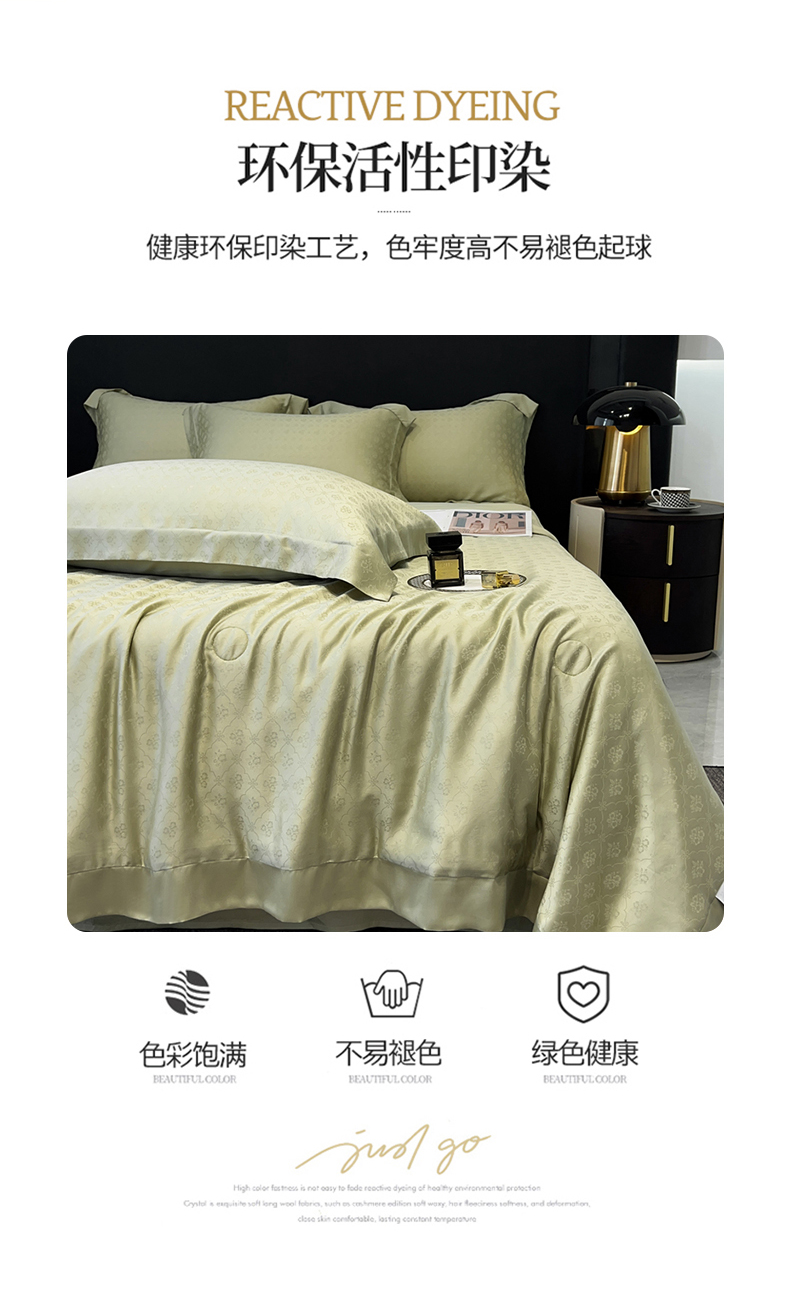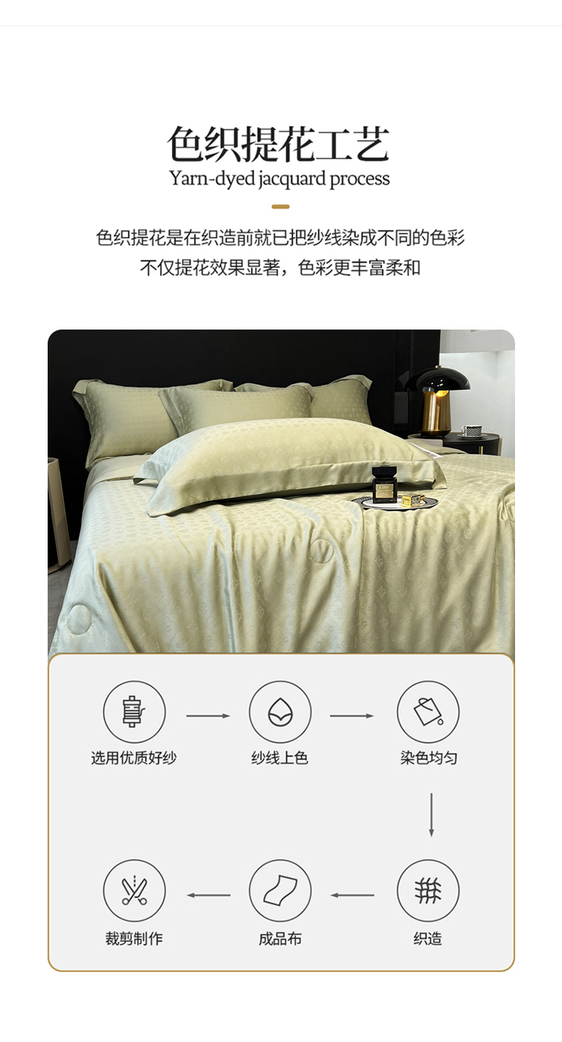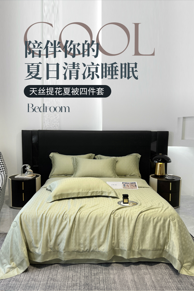 • 91家纺网 家纺一手货源 找家纺 梵克保罗 2025春夏新款莱赛尔兰精天丝提花单夏被空调被夏被四件套 夏日绿