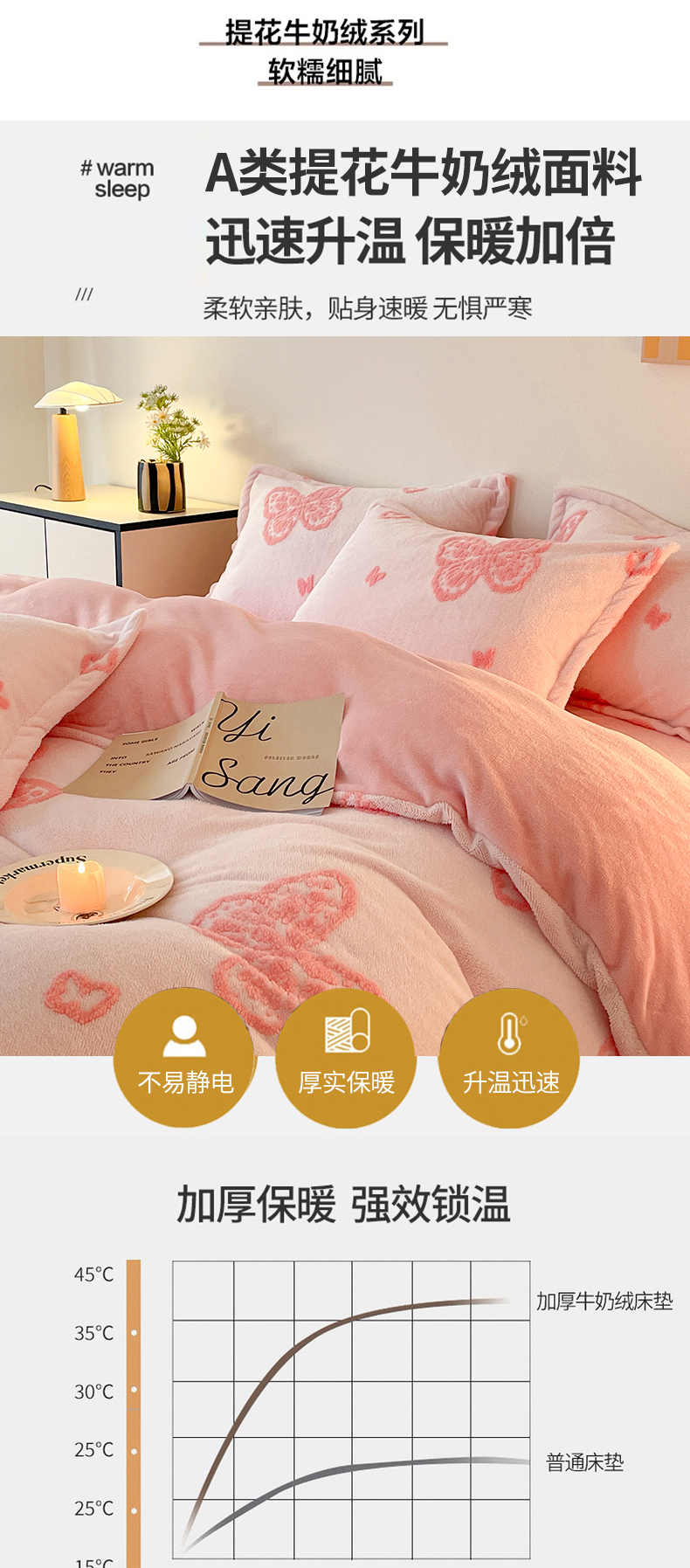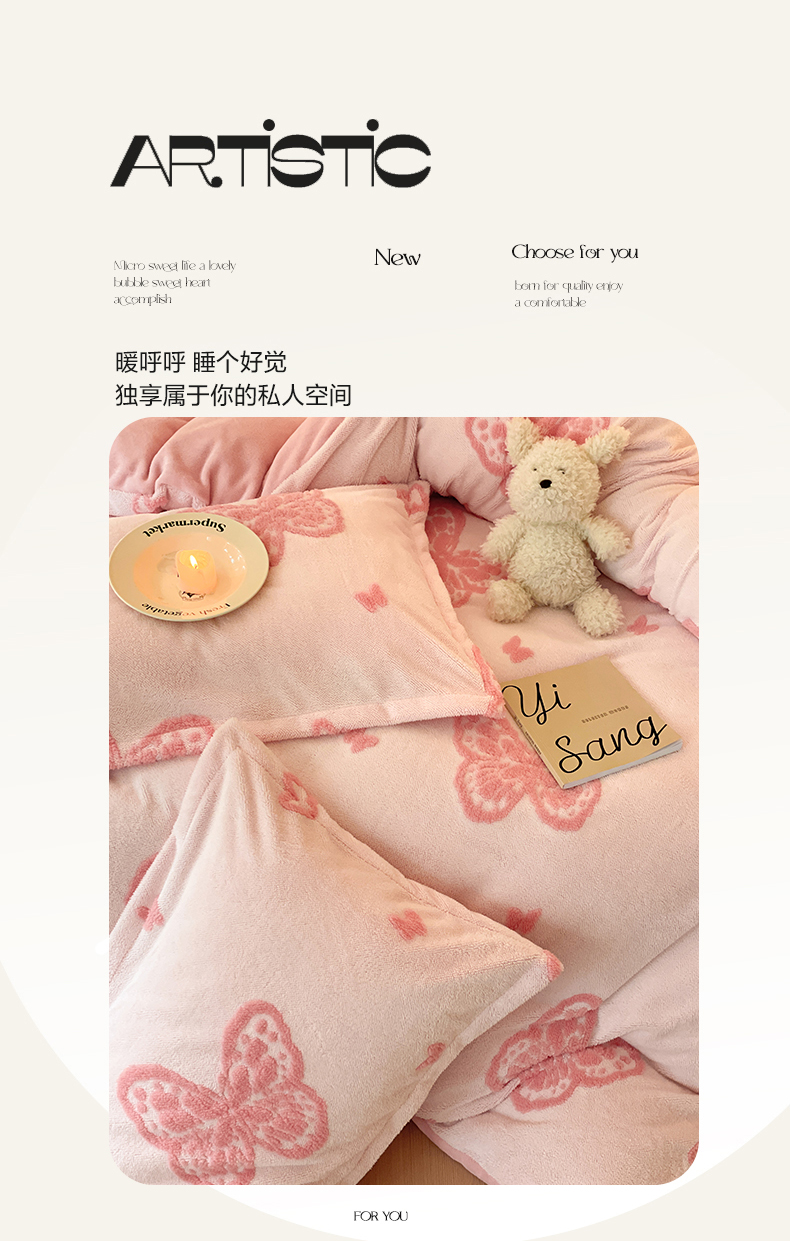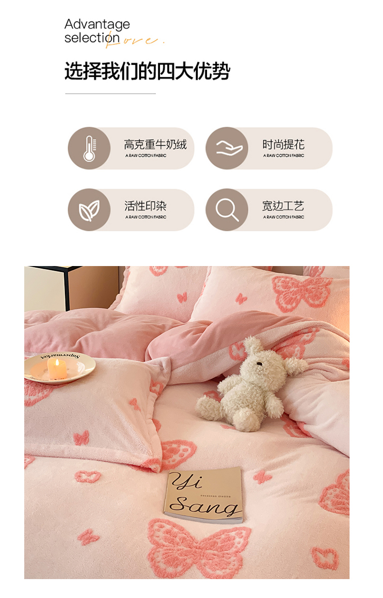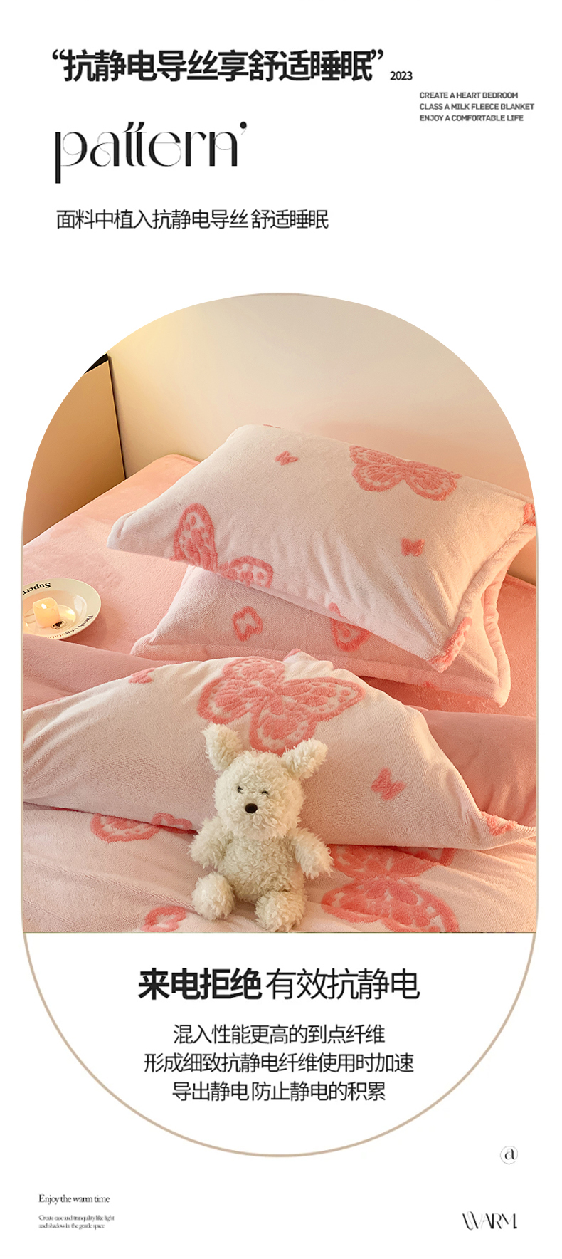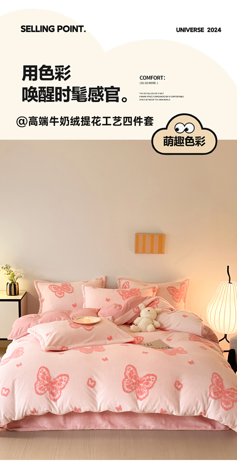当前位置: 91家纺网 > 商品网购 > 床品套件 > 四件套 > 牛奶绒四件套 > 川悦生活 2025新款A类300克高克重提花牛奶绒四件套 甜蜜福蝶