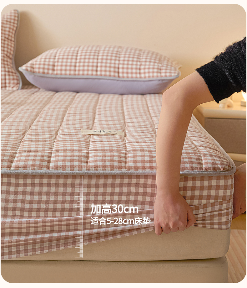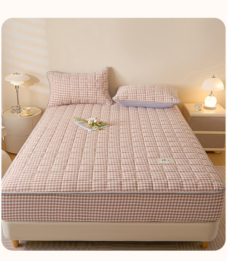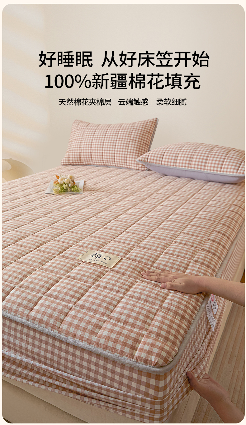 (总)鑫钰 2025新款A类纯棉夹棉床笠学生宿舍专用90x190-80x190-花漾山茶格,花漾山茶格-粉,花漾山茶格-蓝,花漾山茶格-灰