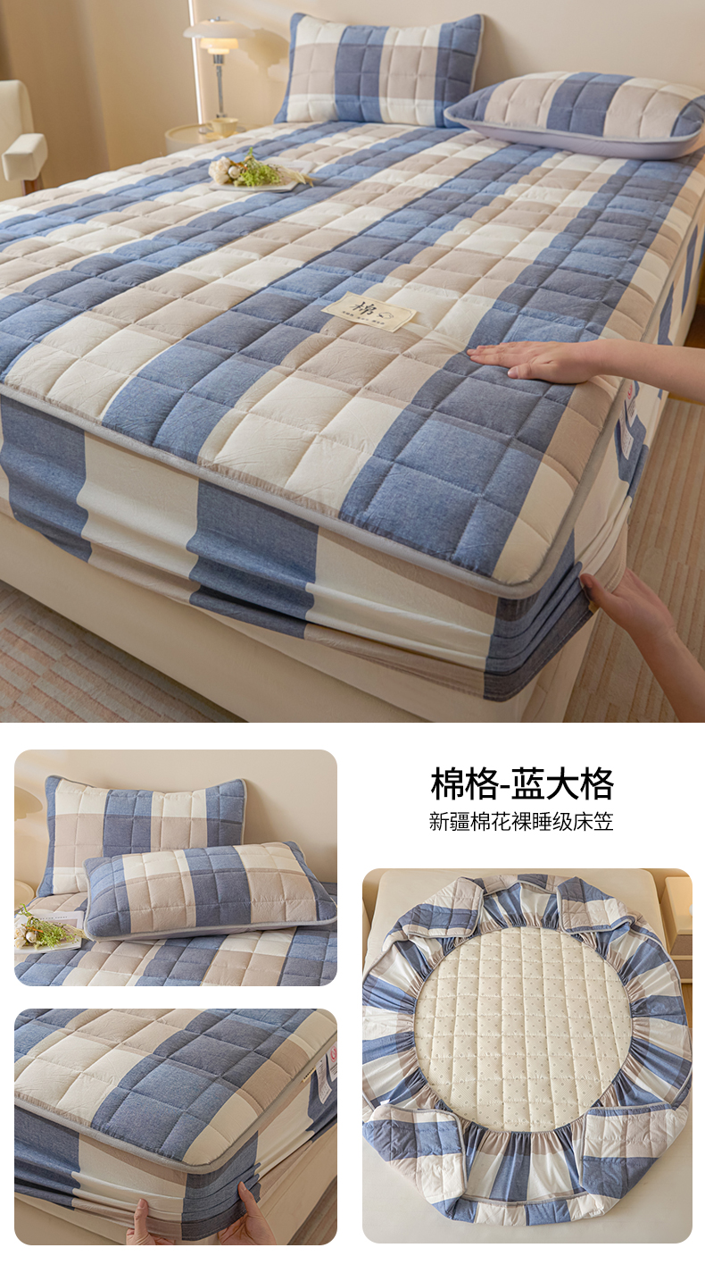 (总)鑫钰 2025秋冬新款新疆棉棉花床笠,棉格-宾利蓝,棉格-简希蓝,棉格-经典白,棉格-蓝小格,棉格-绅士灰,棉格-驼小格