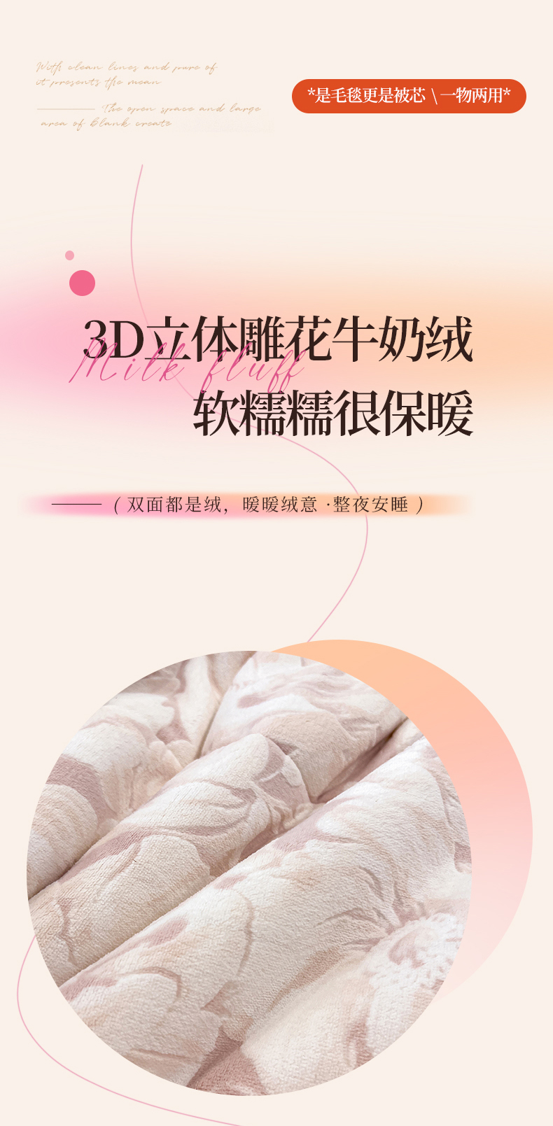 商品名称:倾慕家纺 2026新款雕花绒贝贝绒三层复合保暖毯 三层毯繁华倾心粉