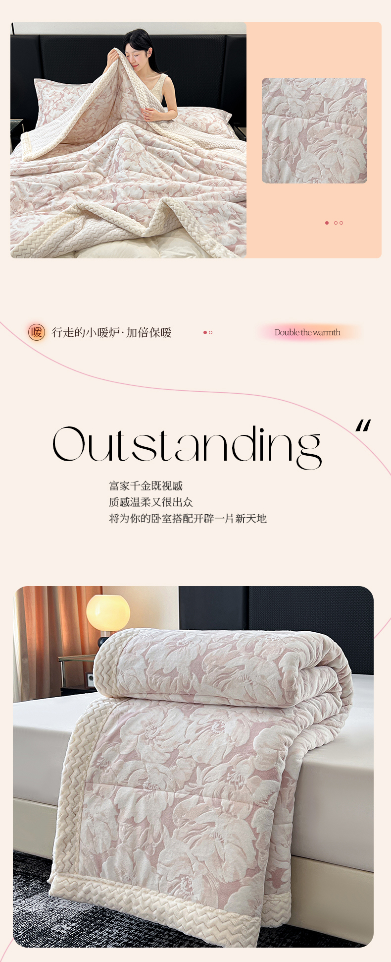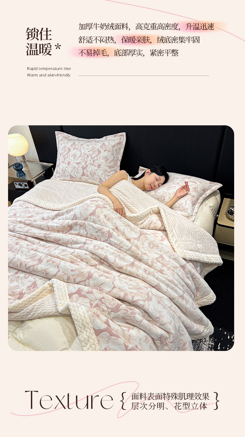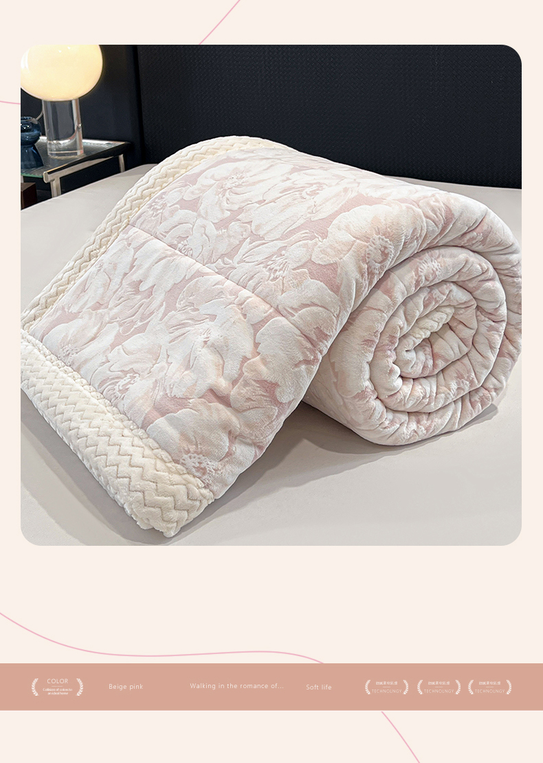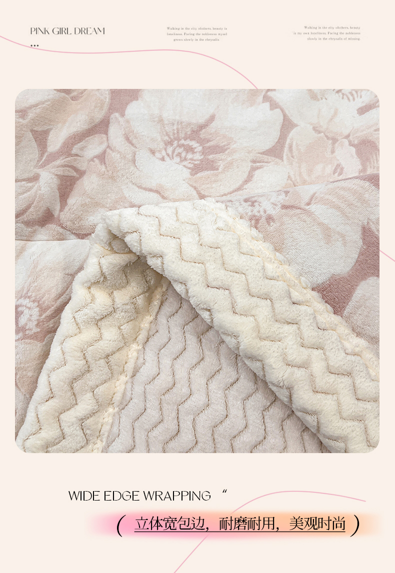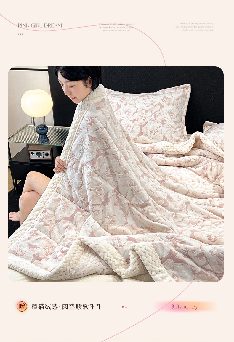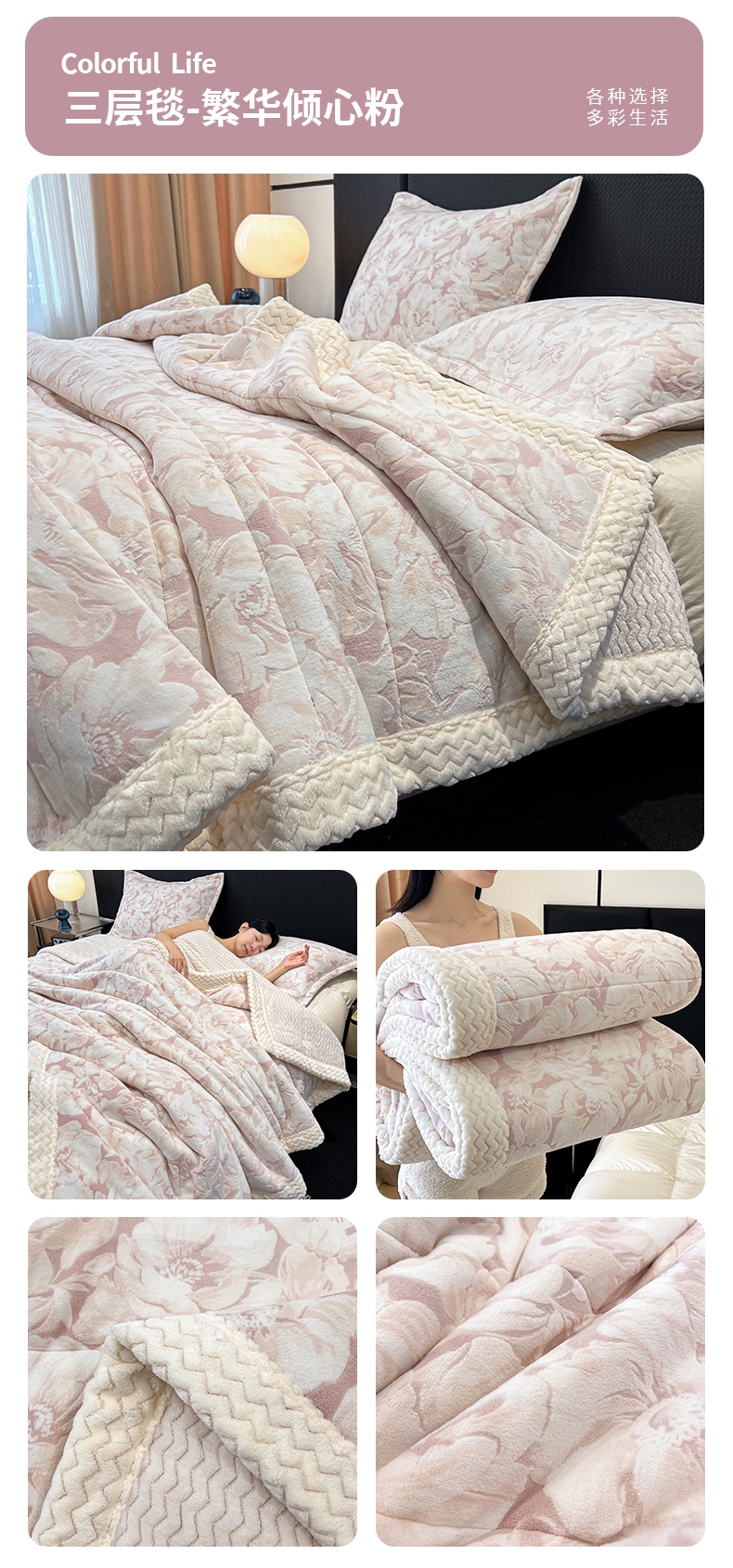 倾慕家纺 2026新款雕花绒贝贝绒三层复合保暖毯 三层毯繁华倾心粉