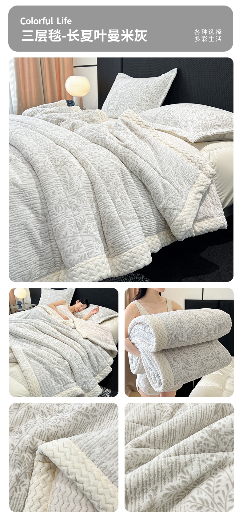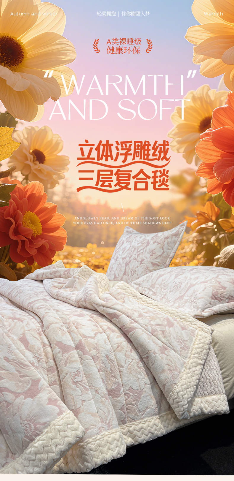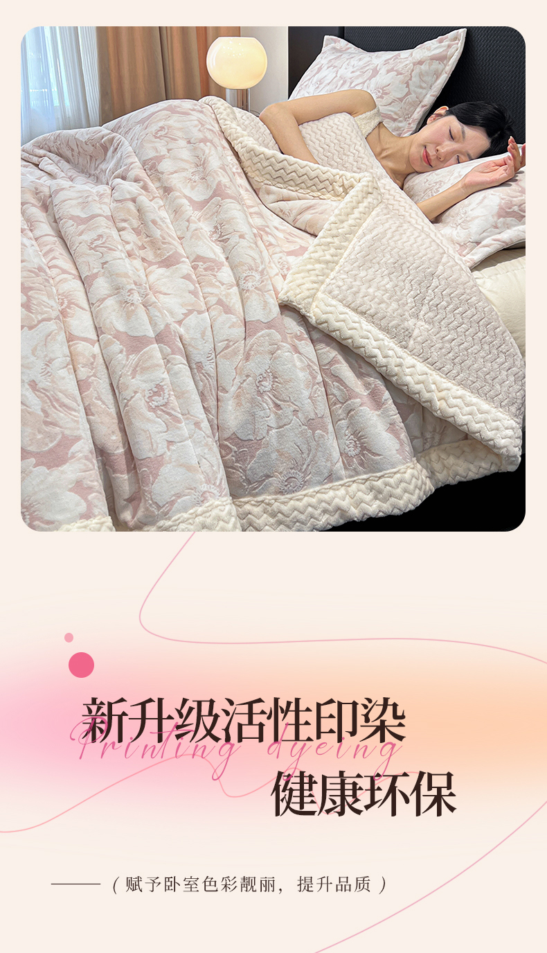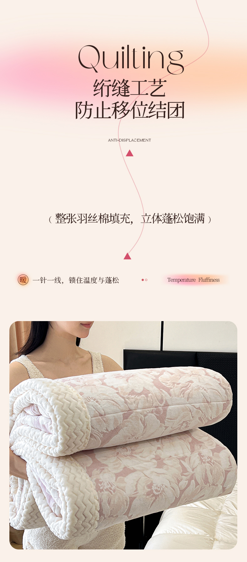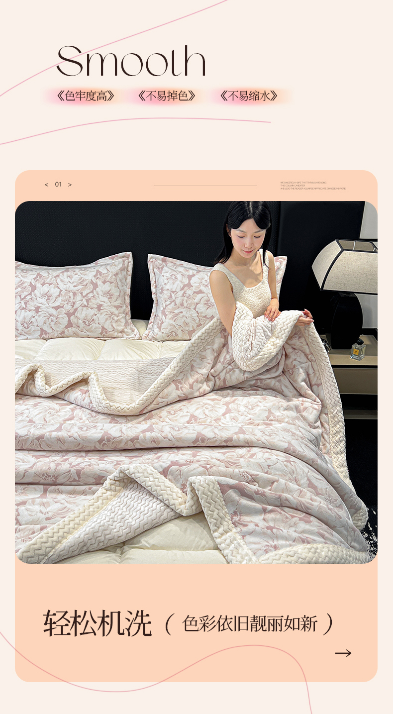倾慕家纺 2026新款雕花绒贝贝绒三层复合保暖毯 三层毯繁华倾心粉