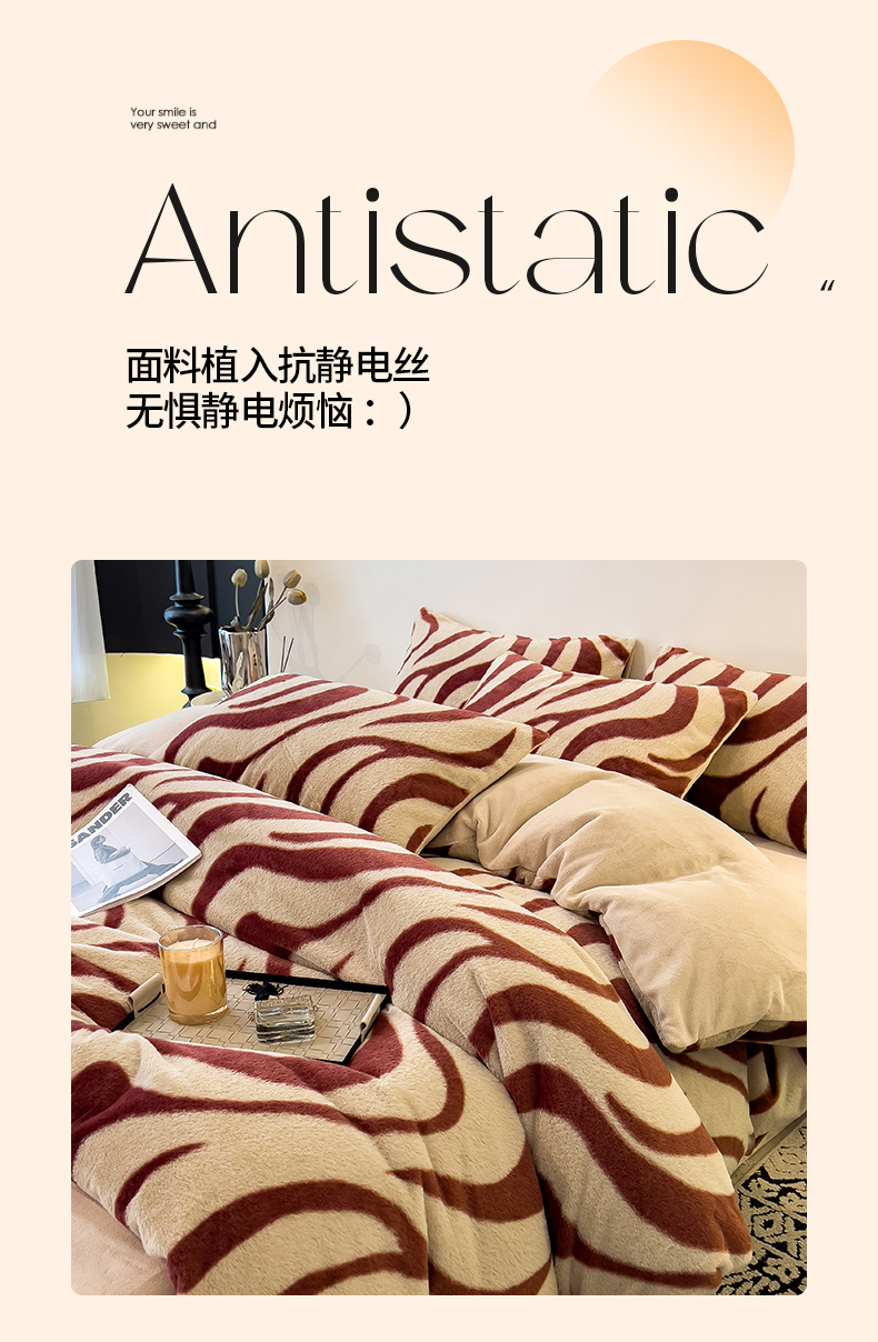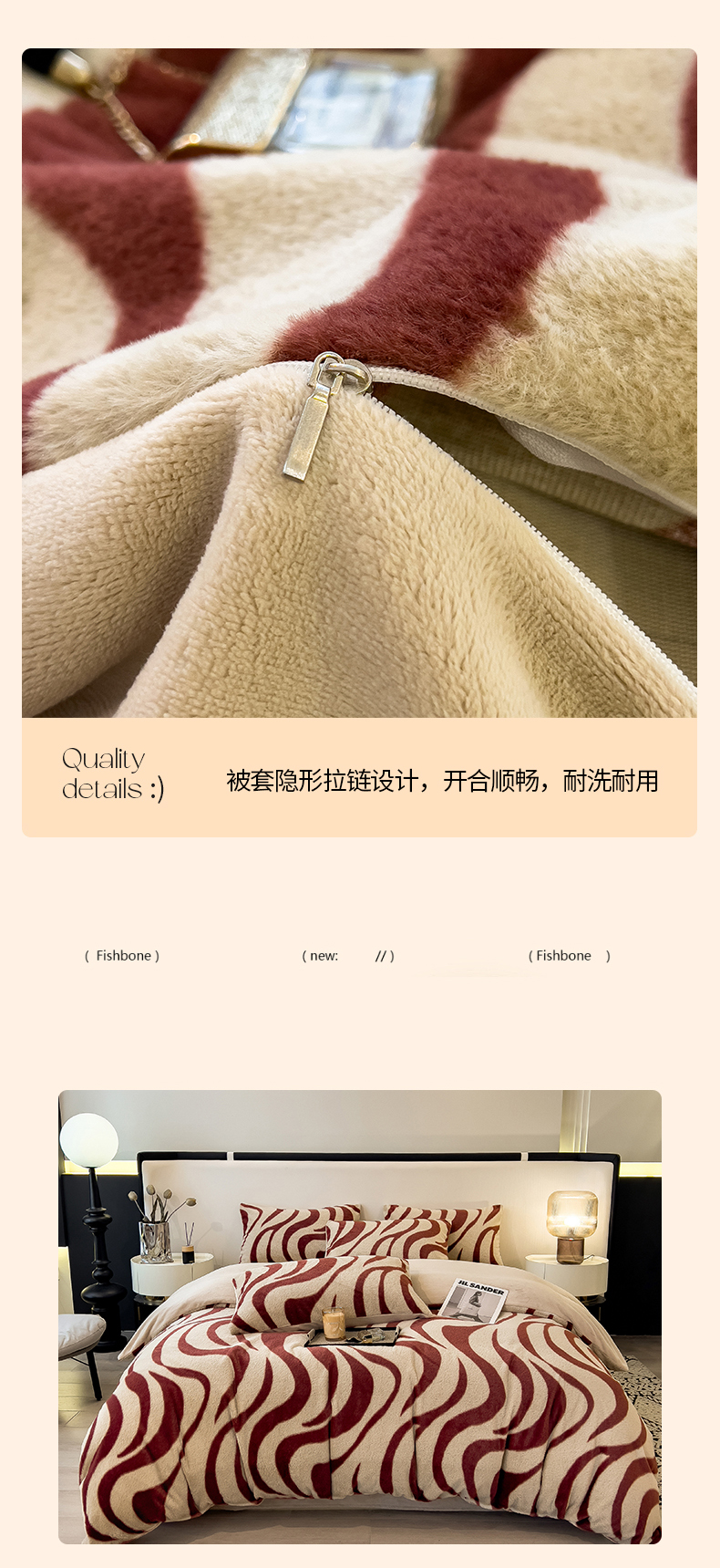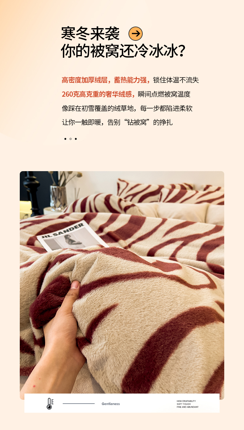 • 91家纺网 家纺一手货源 找家纺 倾慕家纺 2026新款高克重兔毛绒保暖单被套 斑马纹红