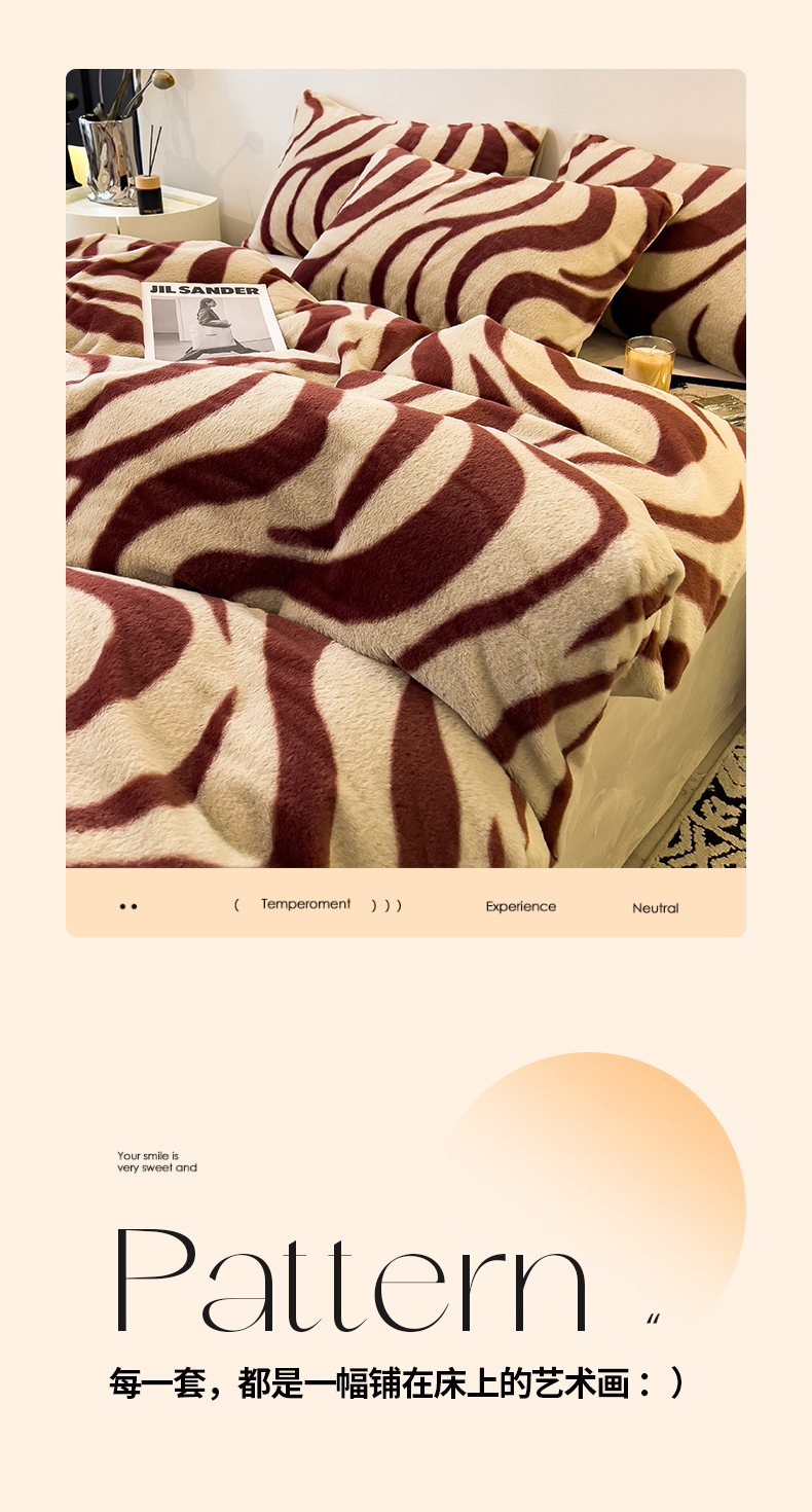 倾慕家纺 2026新款高克重兔毛绒保暖单被套 斑马纹红