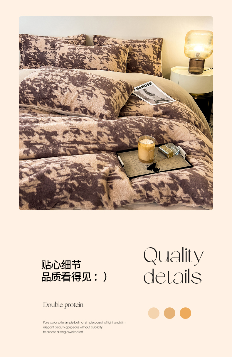 当前位置: 91家纺网 > 商品网购 > 床品套件 > 四件套 > 其它四件套 > 倾慕家纺 2026新款高克重兔毛绒保暖四件套 千鸟咖